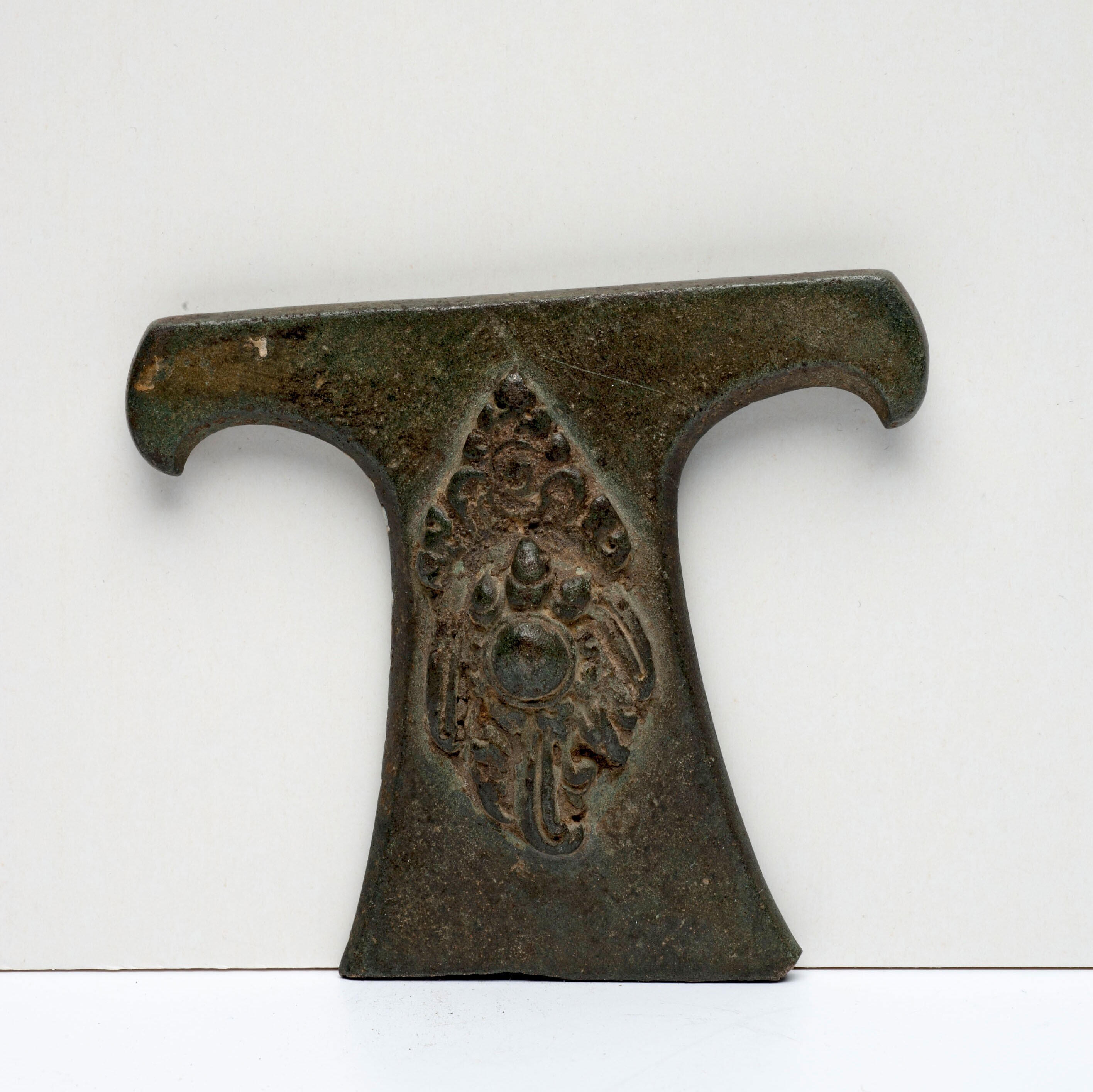 Bronzen spiegelhandvat met een versiering in de vorm van een oog