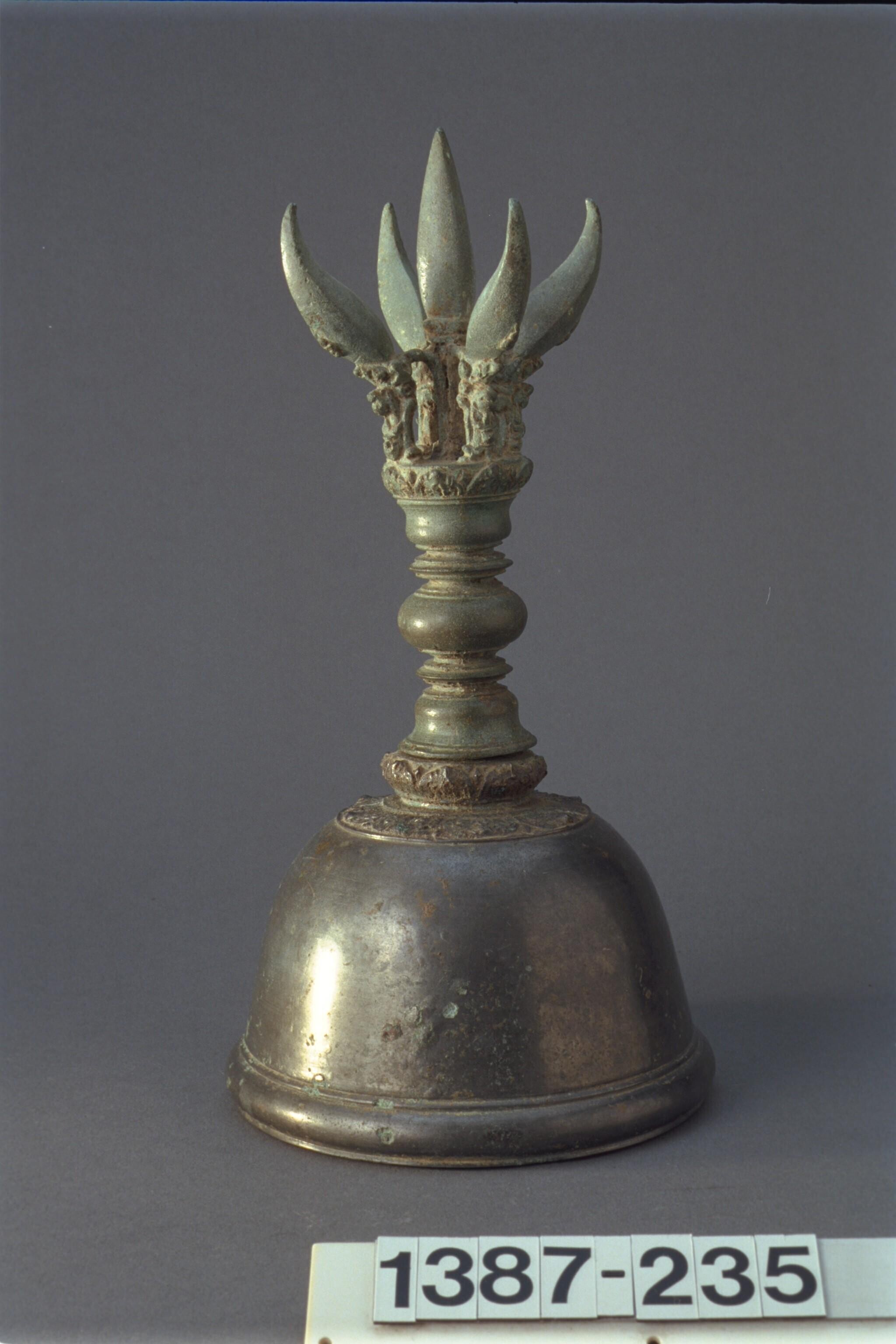 Bronzen priesterbel versierd met lotusbladmotieven en een vijfpuntig topstuk