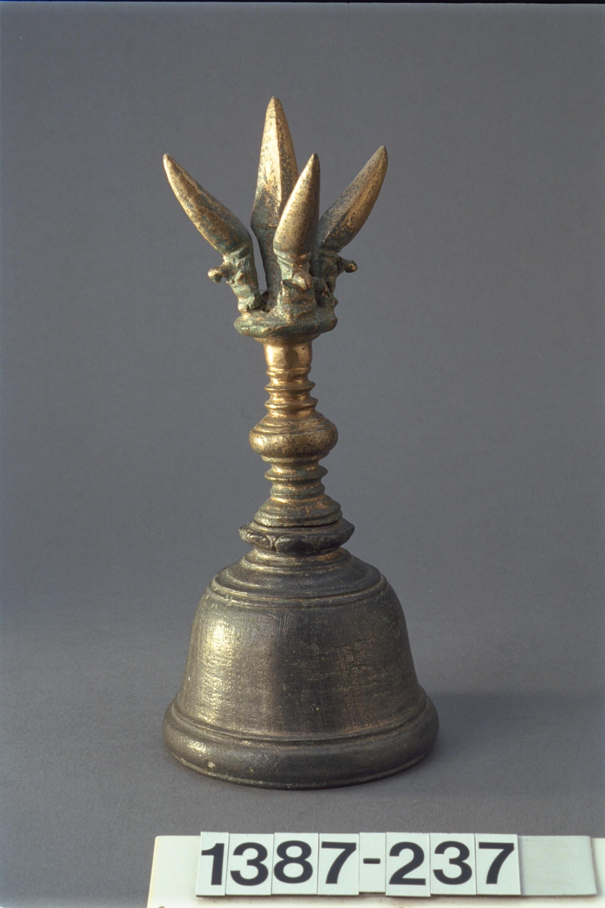 Bronzen priesterbel met een vierpuntig topstuk