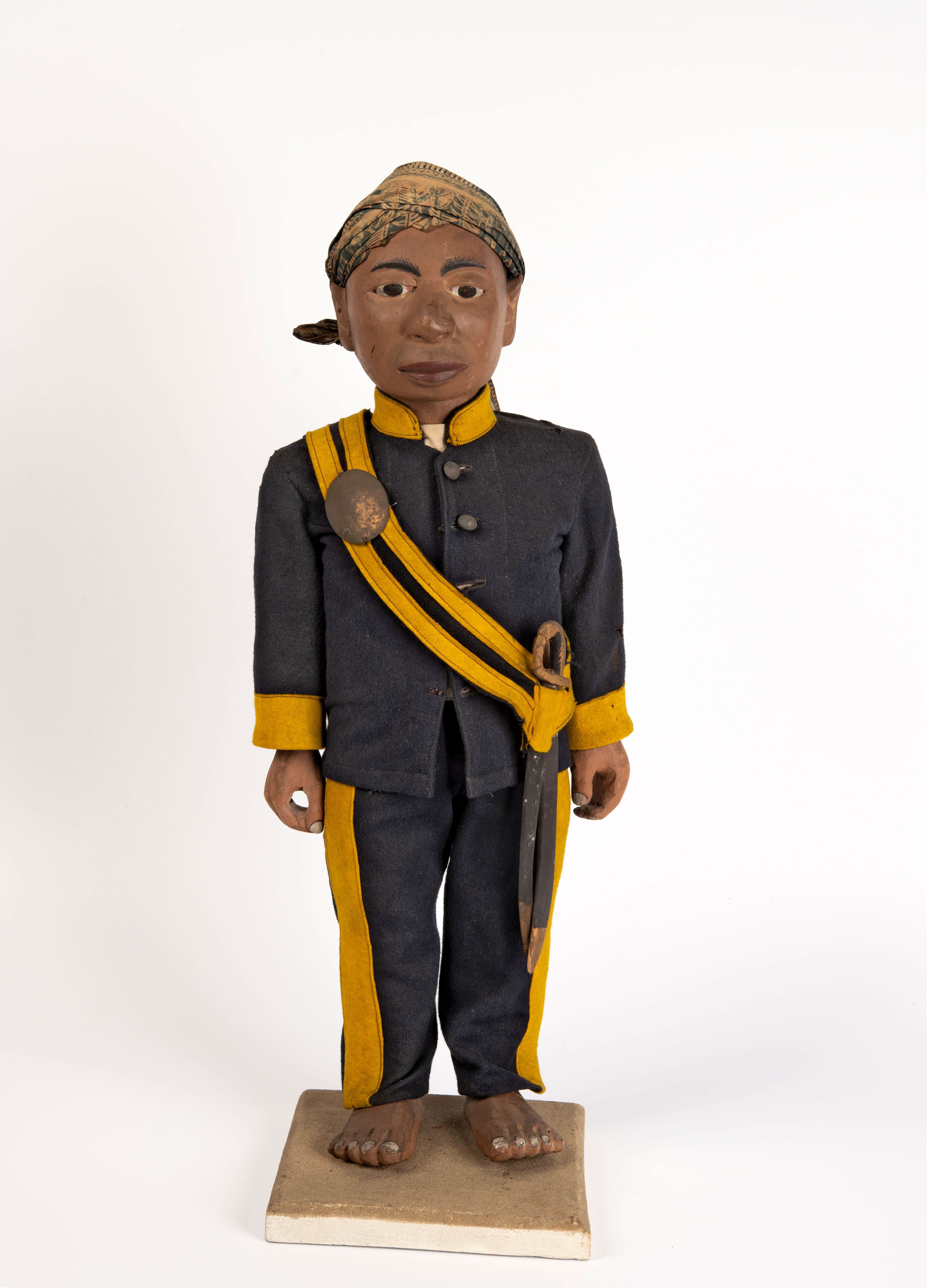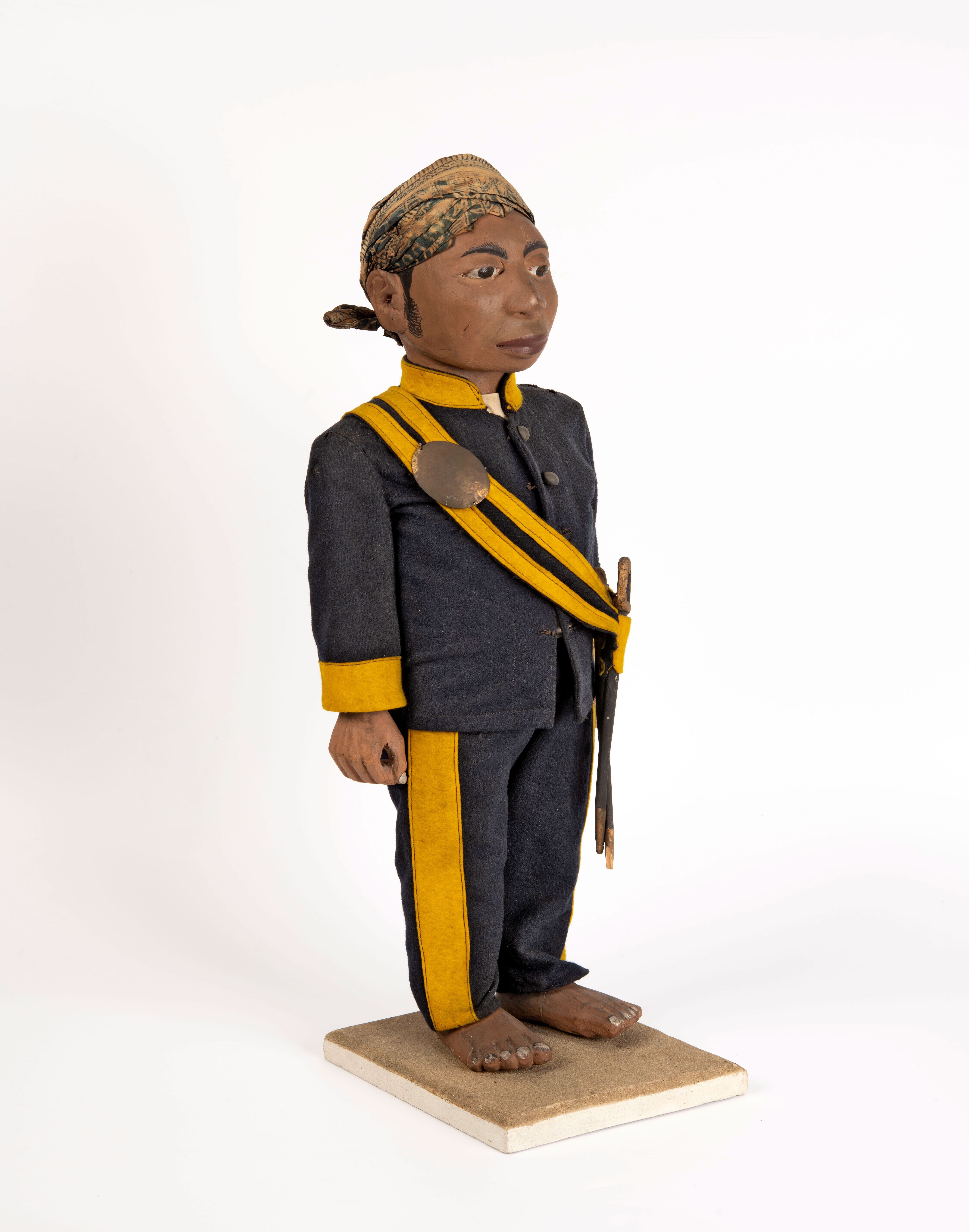 Houten pop van een Javaanse politieagent, behorende bij een set van tien poppen