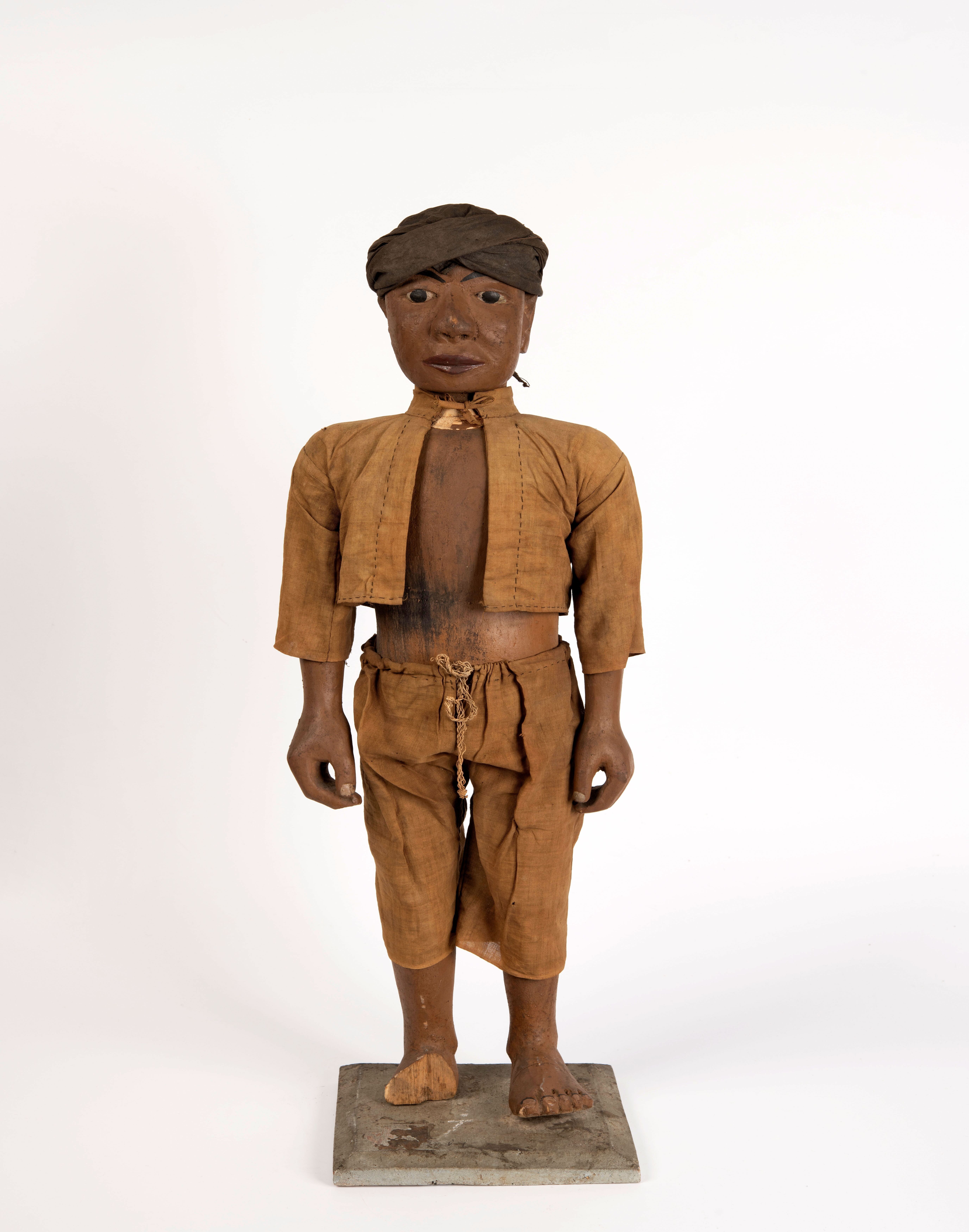 Houten pop van een gestrafte, behorende bij een set van tien poppen