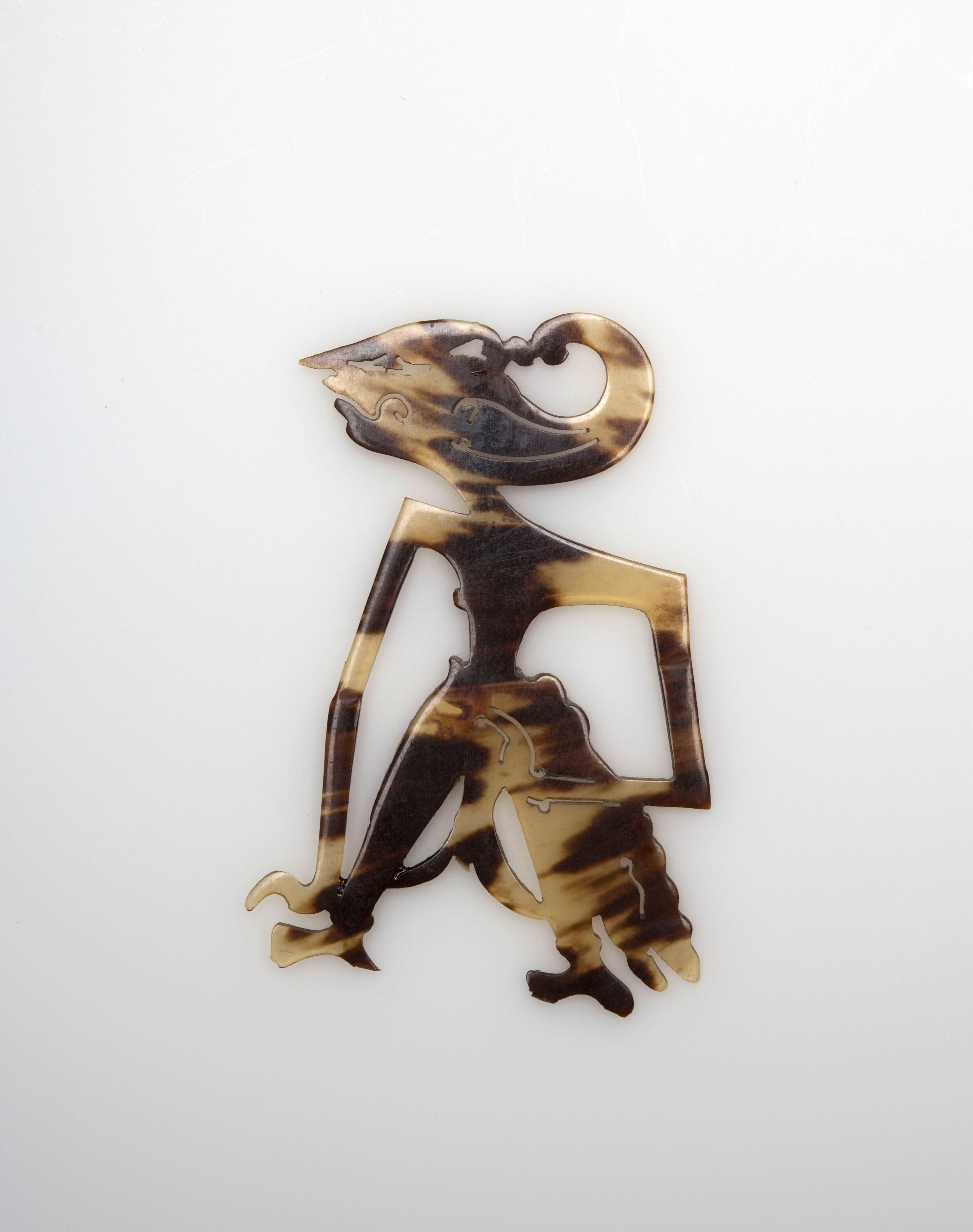 Schildpad wayangfiguur op zwart hoornen voetstuk