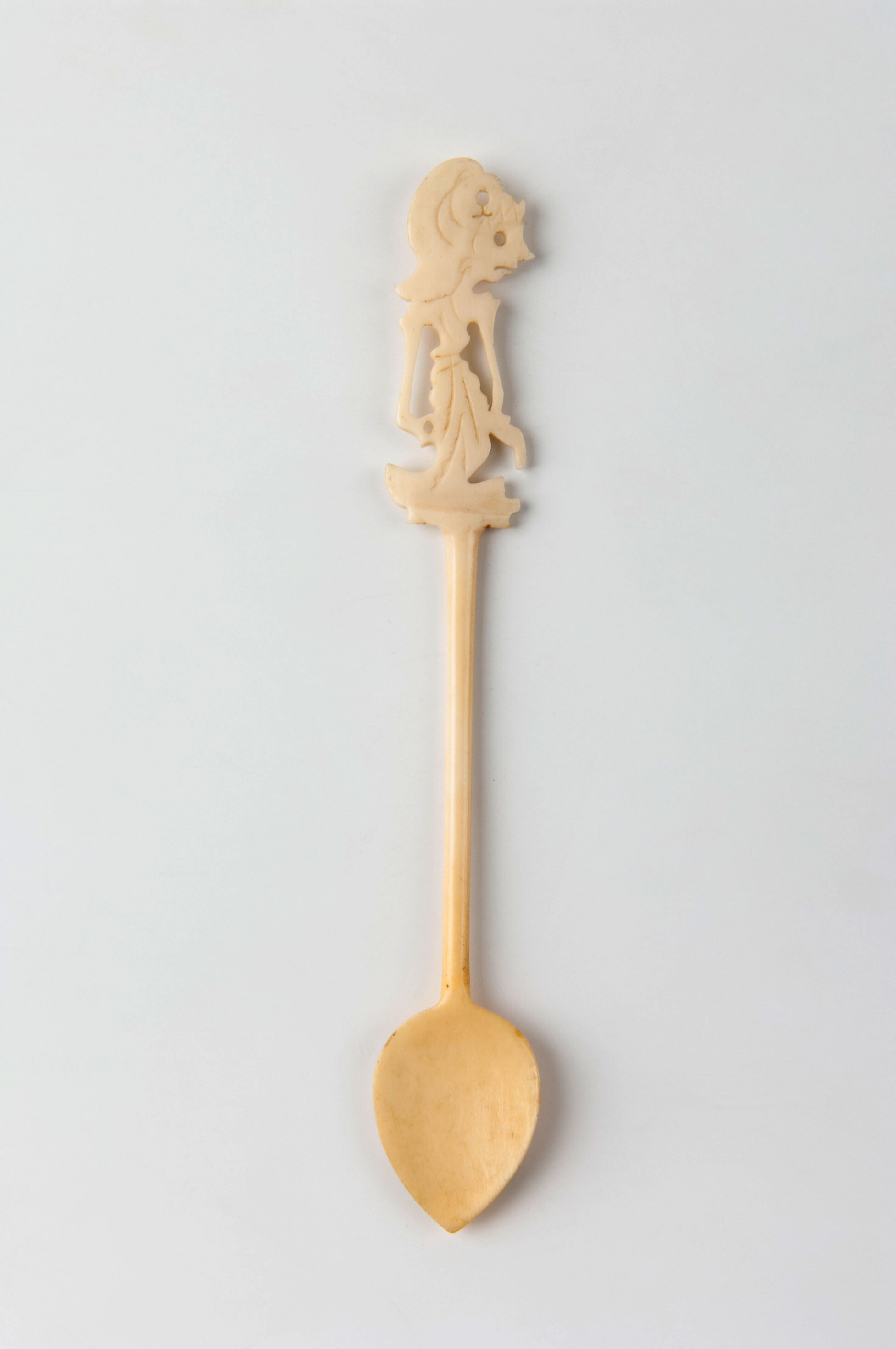 Eierlepel van been met wayangfiguur