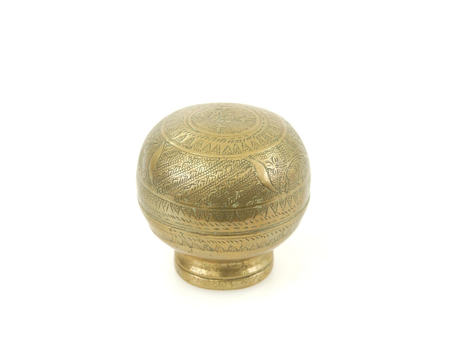 Geelkoperen pot voor het bewaren van tabak en gambir
