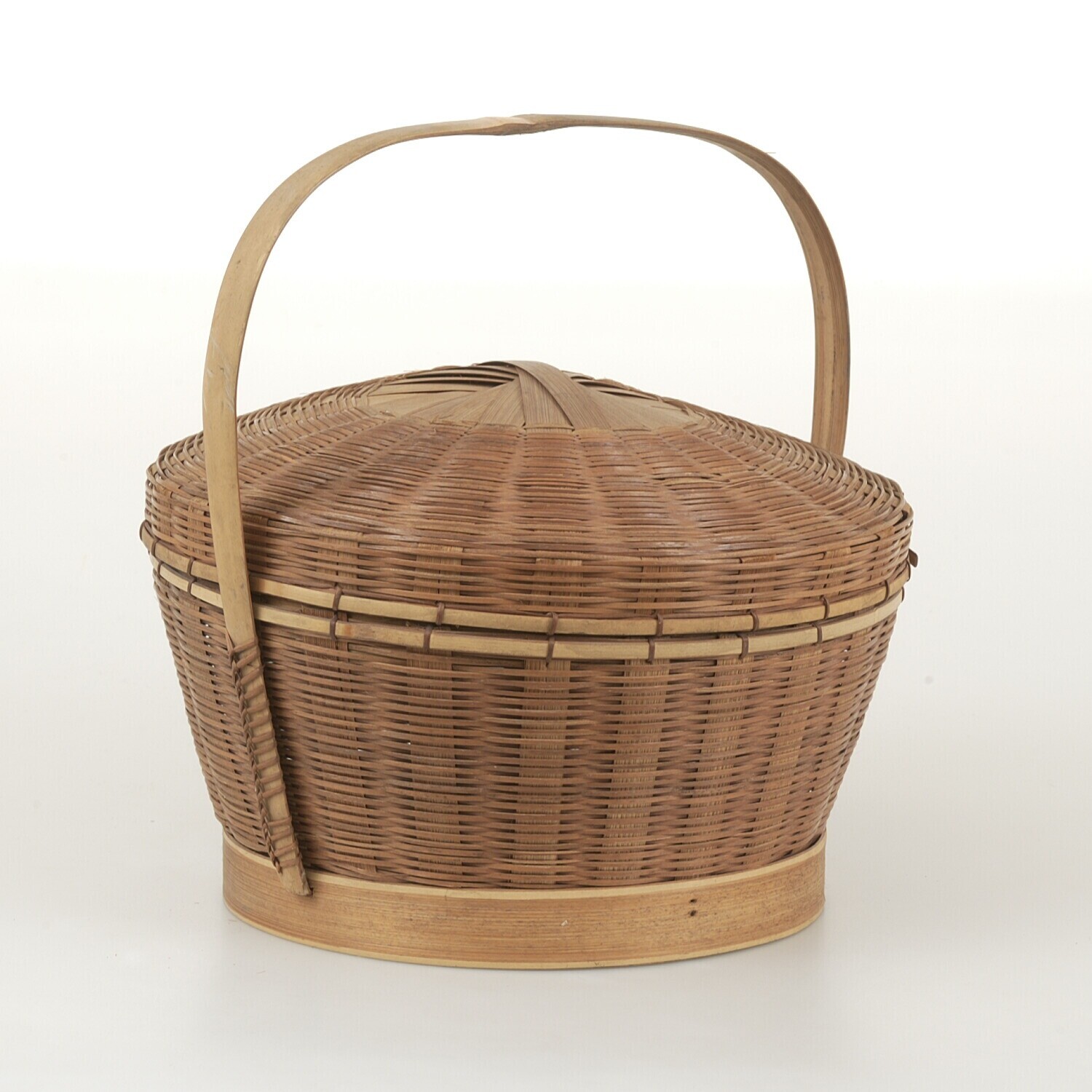 Gevlochten hengselmand met deksel van rotan en bamboe