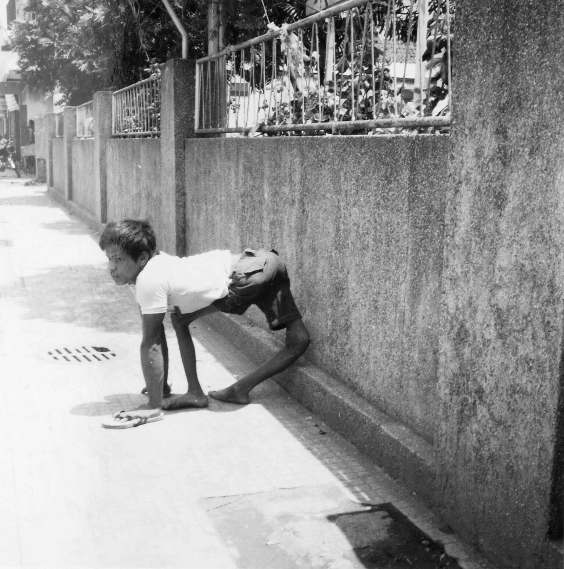 Een bedelaar met een lichamelijke beperking langs de kant van de straat