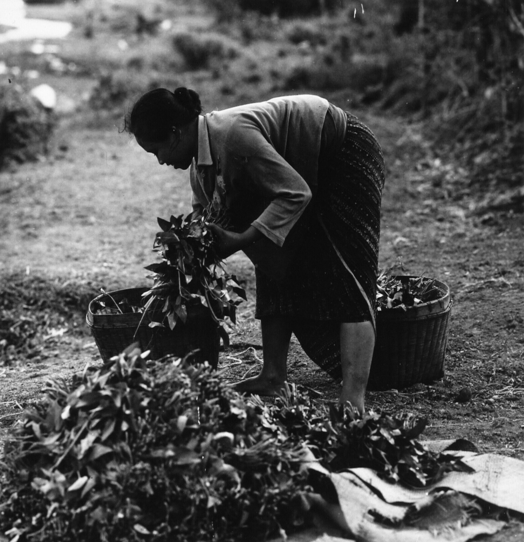 Een vrouw oogst kangkung, een moerasgroente die is gekweekt aan de oever van de Kali Opak
