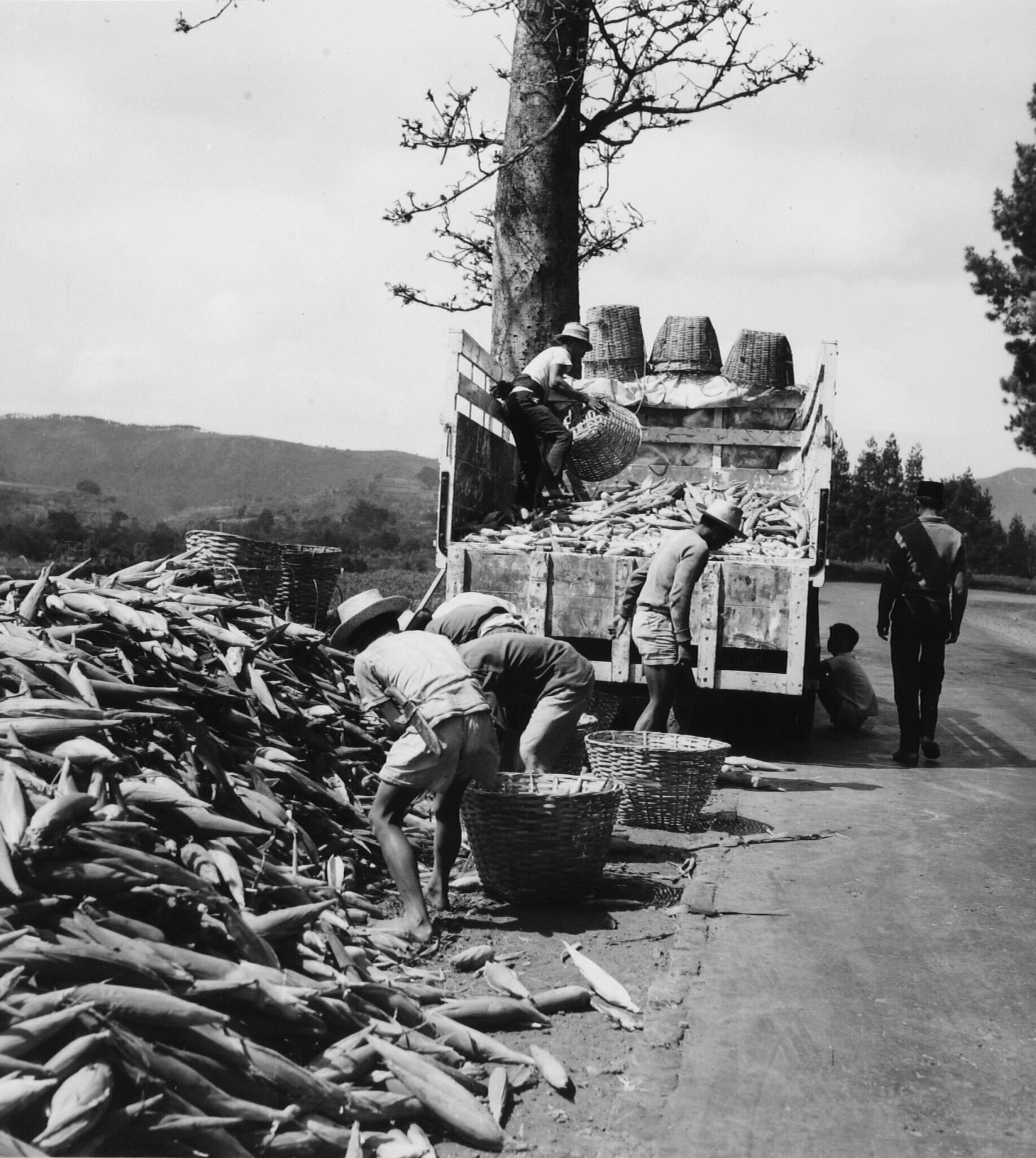 De maisoogst wordt met een vrachtwagen vervoerd naar de markten
