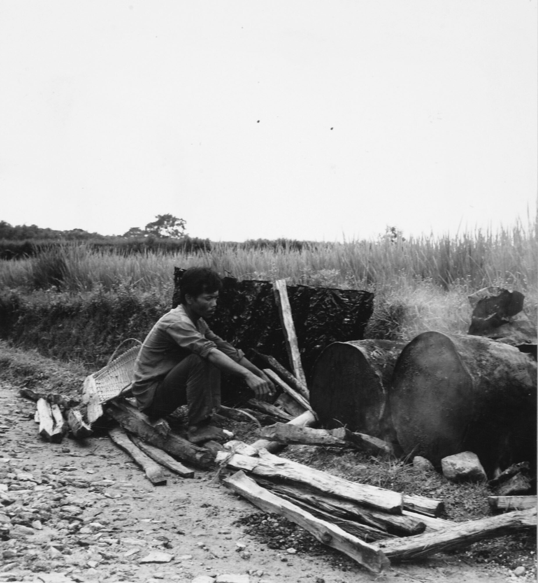 Een arbeider werkzaamheden aan de weg Sungai Puar