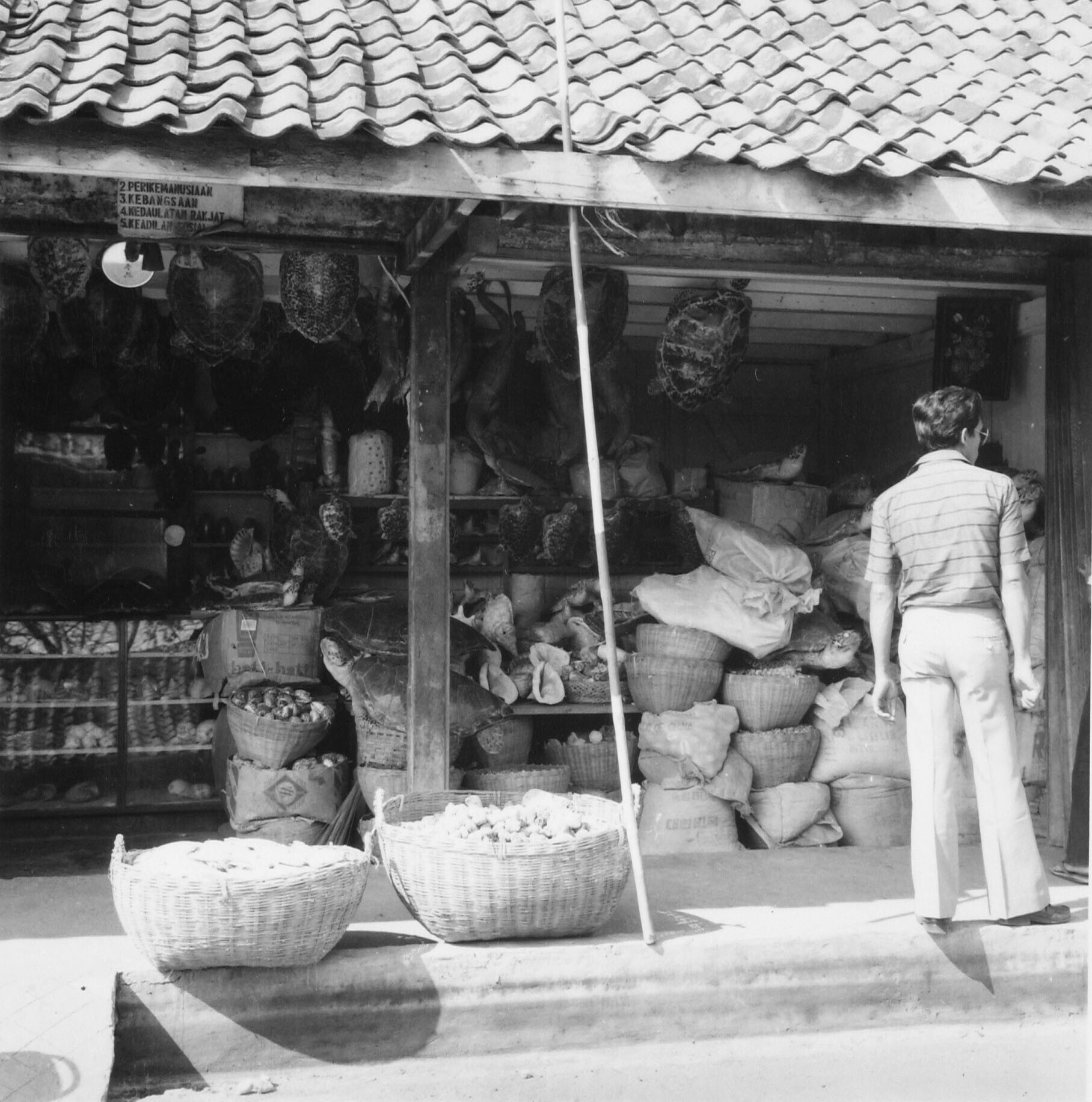 De pasar ikan een winkel met allerei schelpen en schildpadden