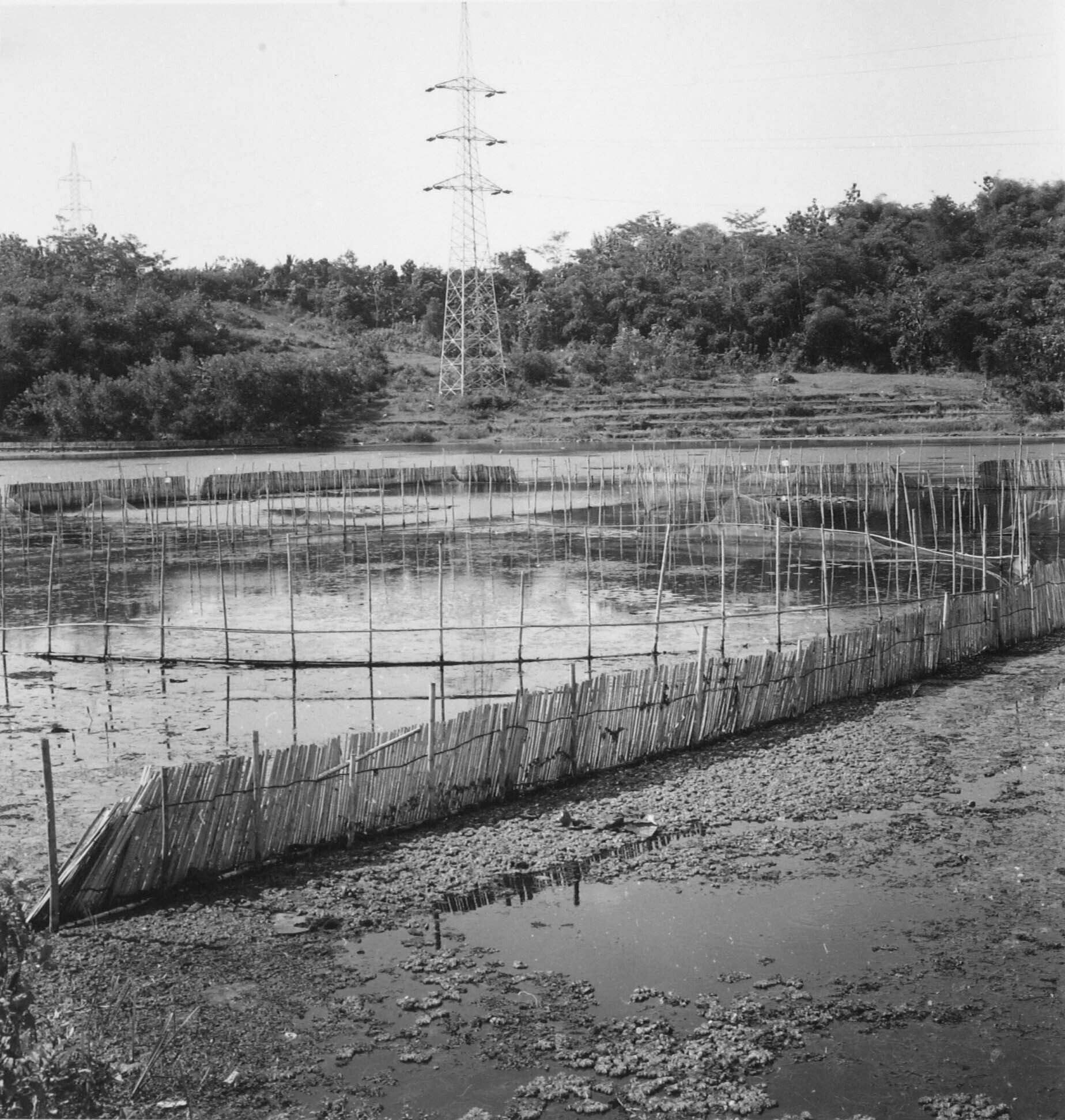 Bambu visvang in het Curyg meer, dit is een overloopmeer in de Citarumrivier