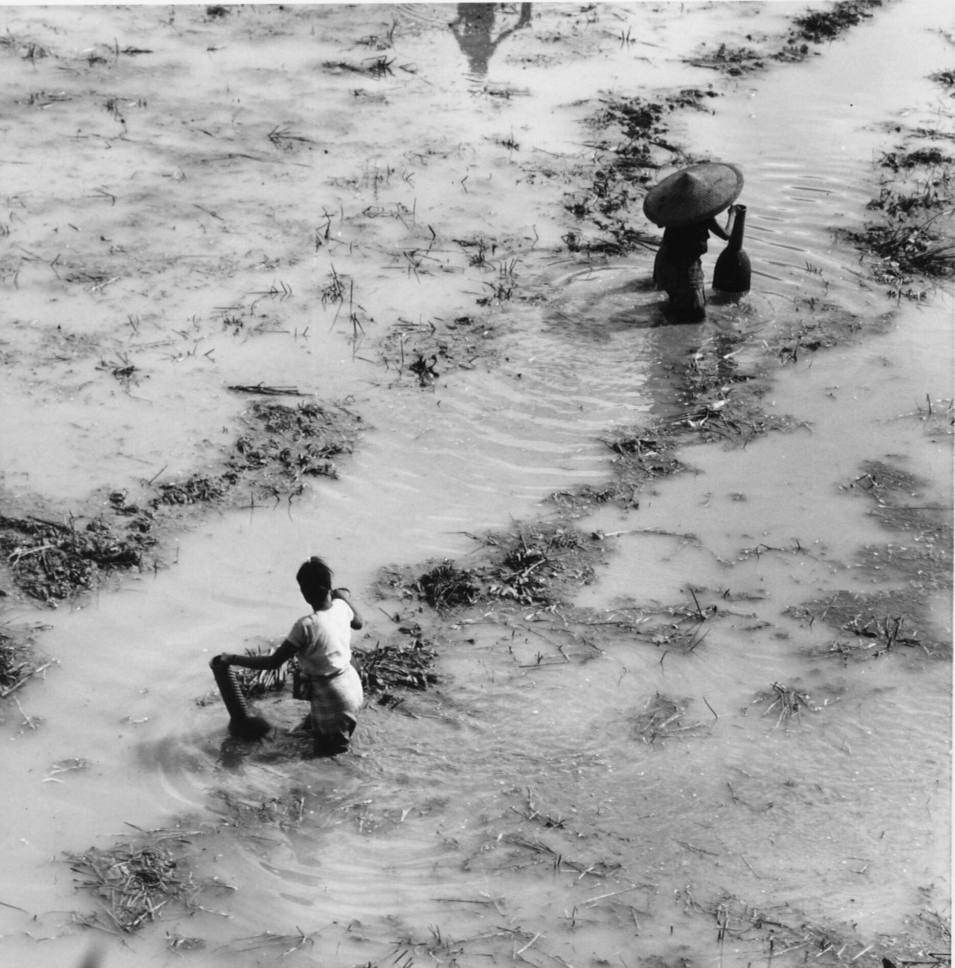 Na de oogst wordt de sawah geïnudeerd, tegen de tijd dat men weer gaat ploegen laat men het water weglopen en met behulp van korven wordt er gevist