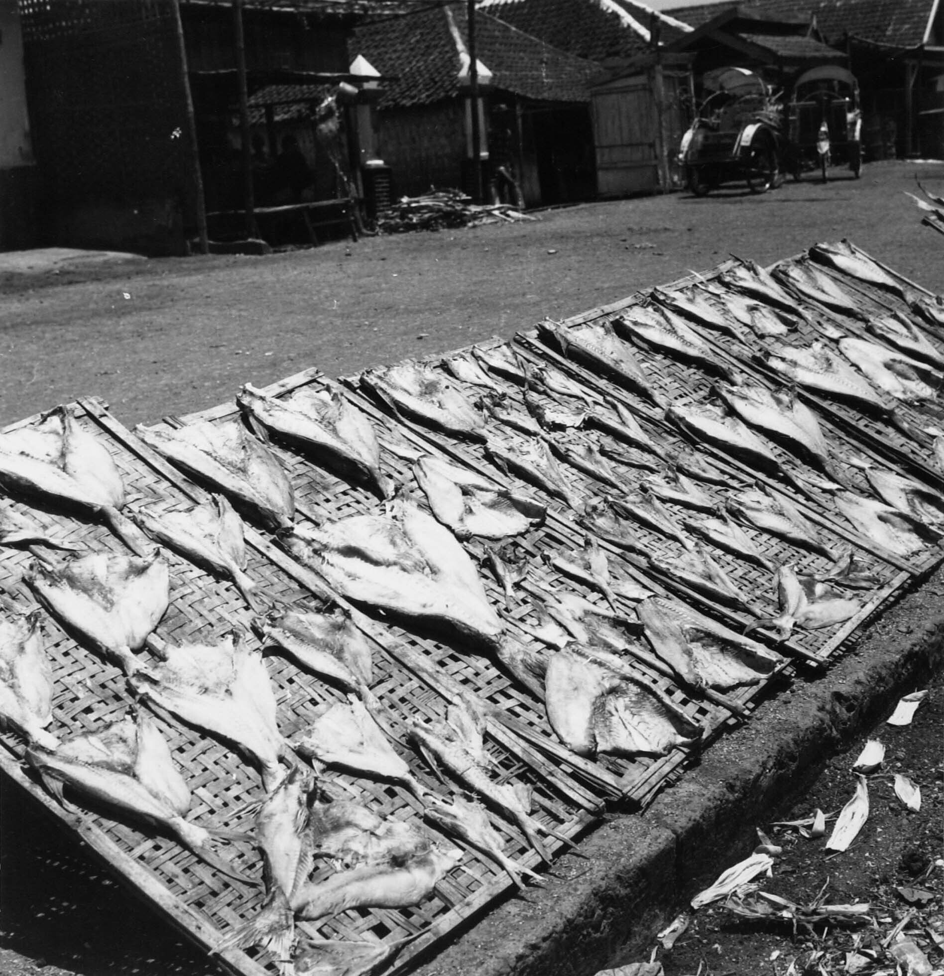 Vissen liggen in de zon te drogen