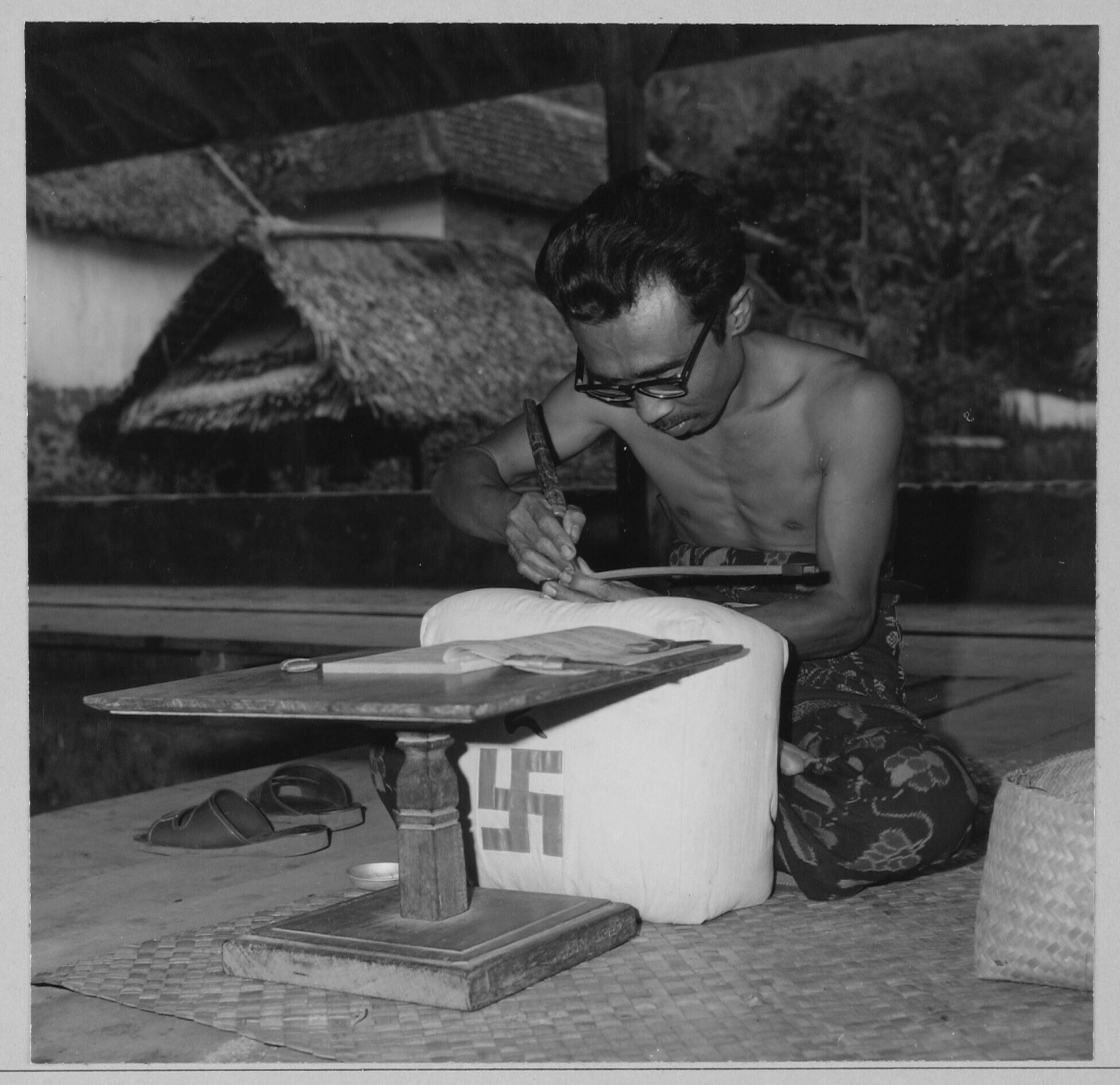Het vervaardigen van Lontargeschriften afgeschreven van eeuwenoude handschriften die in het dorp bewaard zijn gebleven, de swatika is het oorspronkelijke symbool van het zonnewiel