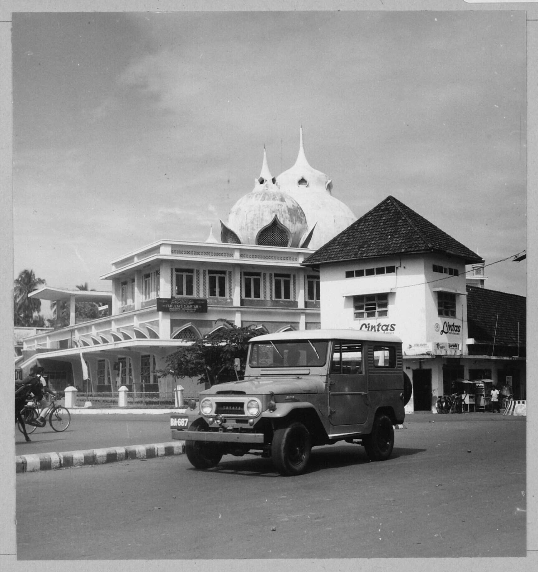 Het gebouw van de Universitas Muhammadijah, de Mohammedaanse Uiversiteit, Facultas Shariah; rechts het reisbureau Lintas