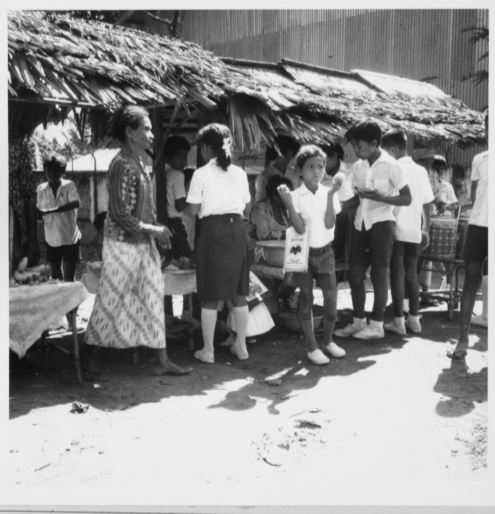 Verkoop van snoep en etenswaren aan de schoolkinderen tijdens pauze