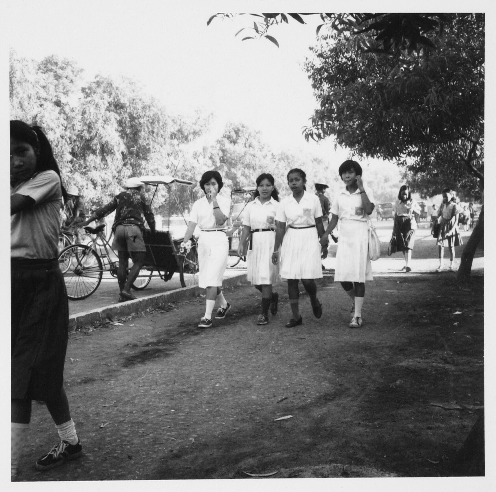 Schoolkinderen in schooluniform op weg naar school