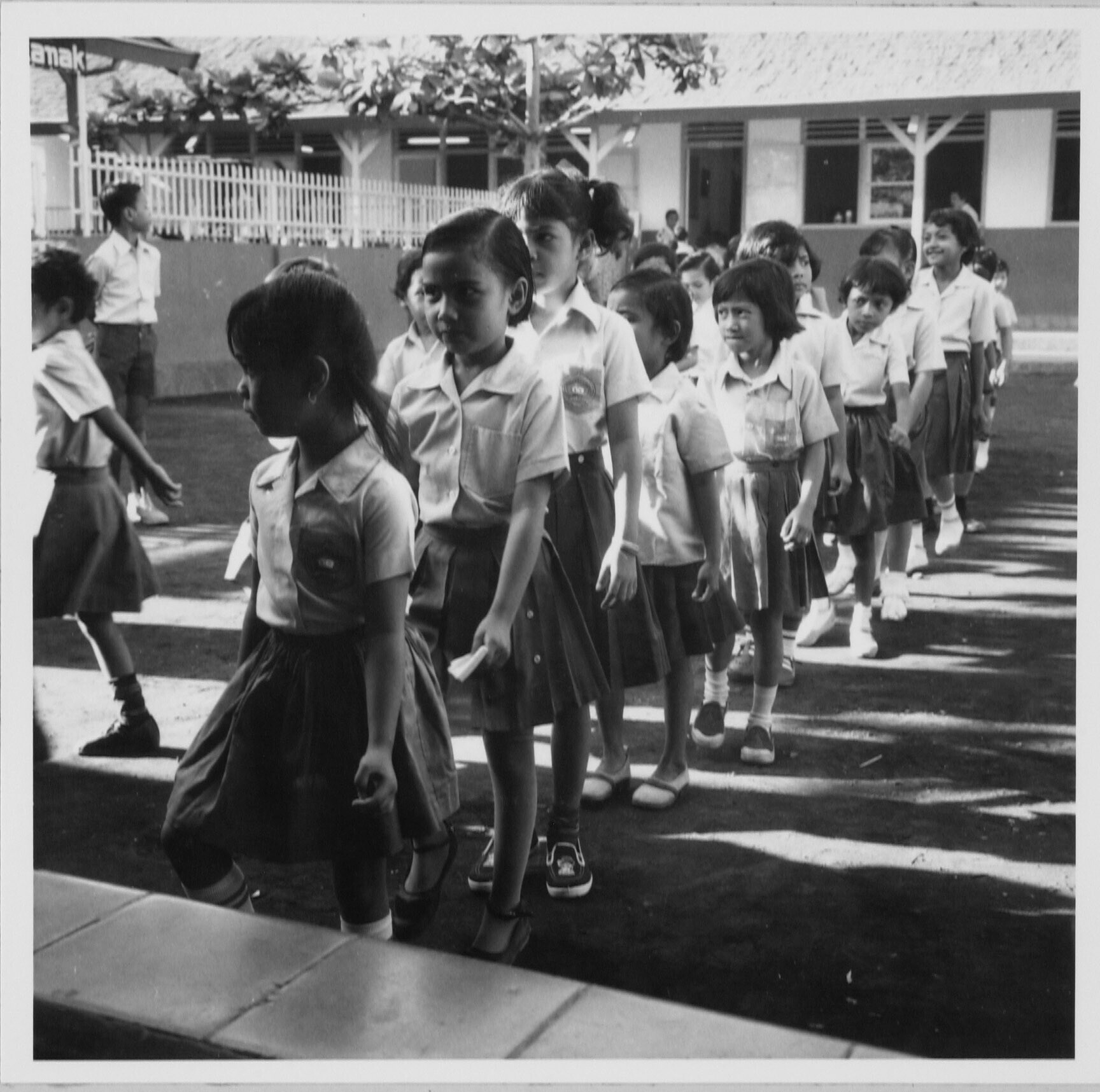 Schoolmeisjes marcheren naar hun klas