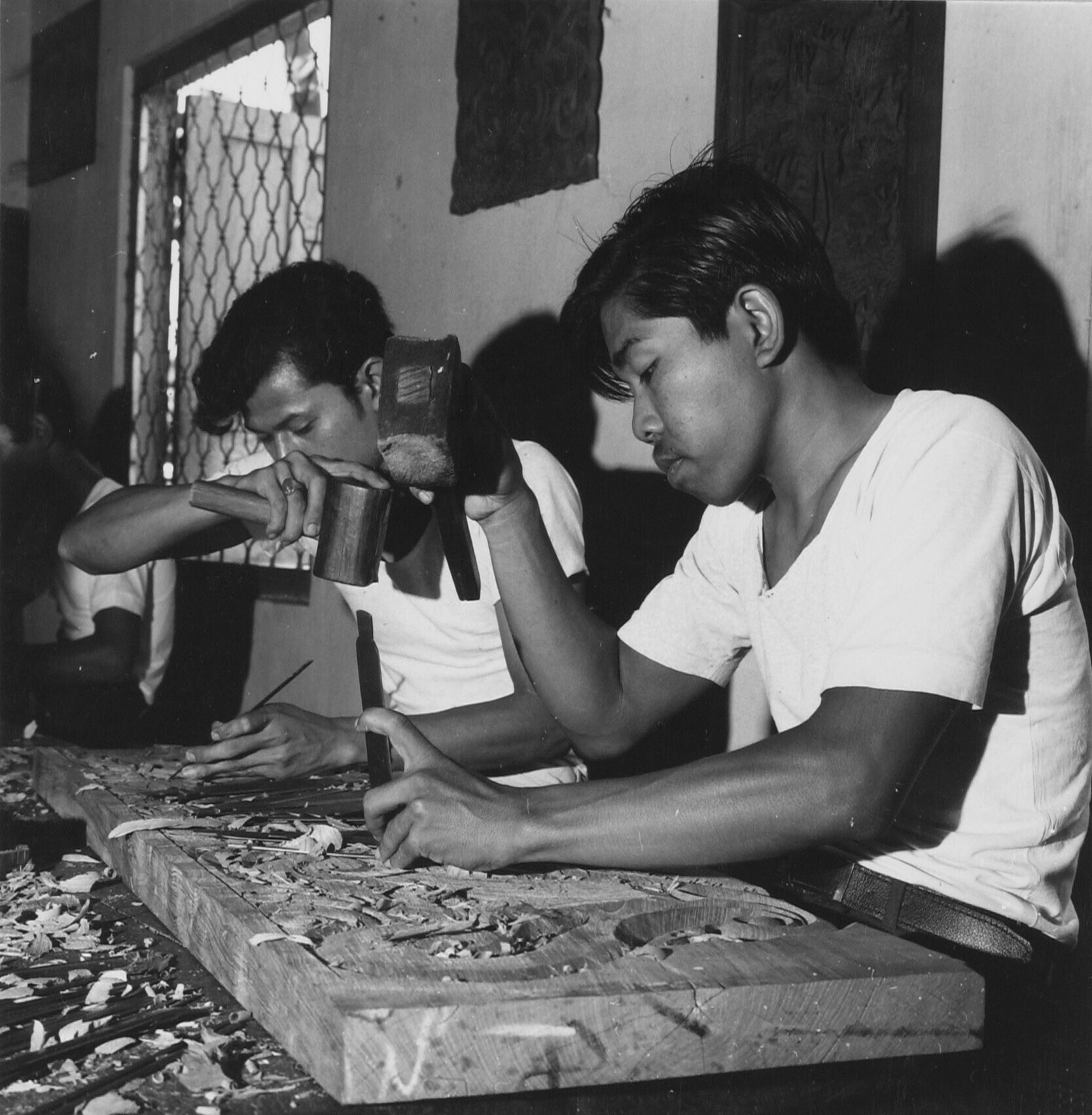 Akademie voor Beeldende Kunsten ( Akademie Seni Rupa Indonesia, afgekort ASRI ) Leerlingen van de houtsnijwerkklas