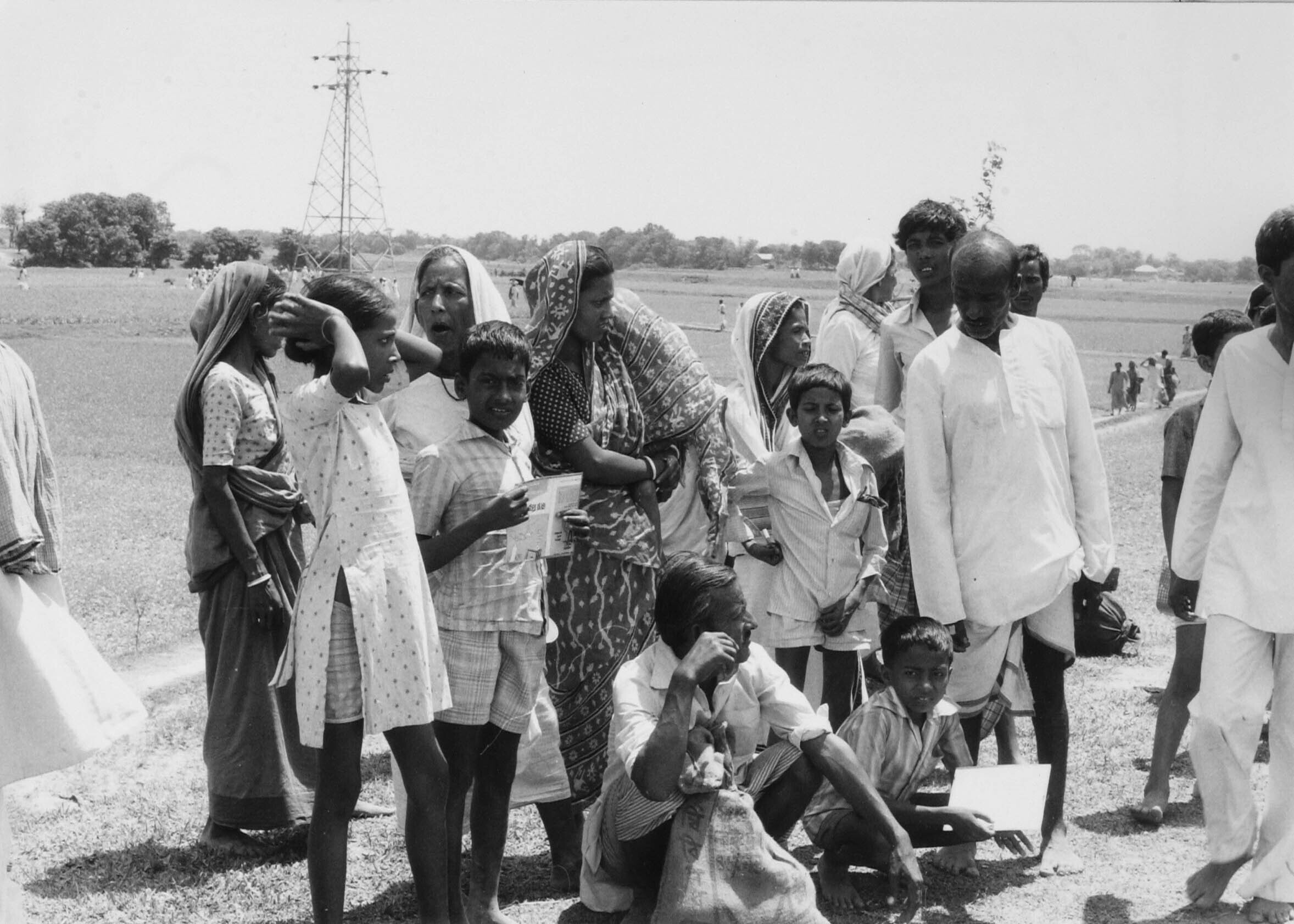 Mensen wachtend op de pont over de Meghna richting Comilla