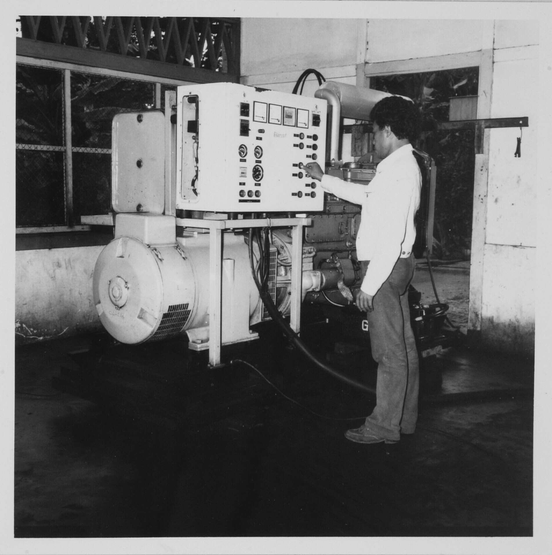 De machinist start de electriciteitscentrale, van 18:00 - 06:00 uur is er stroom