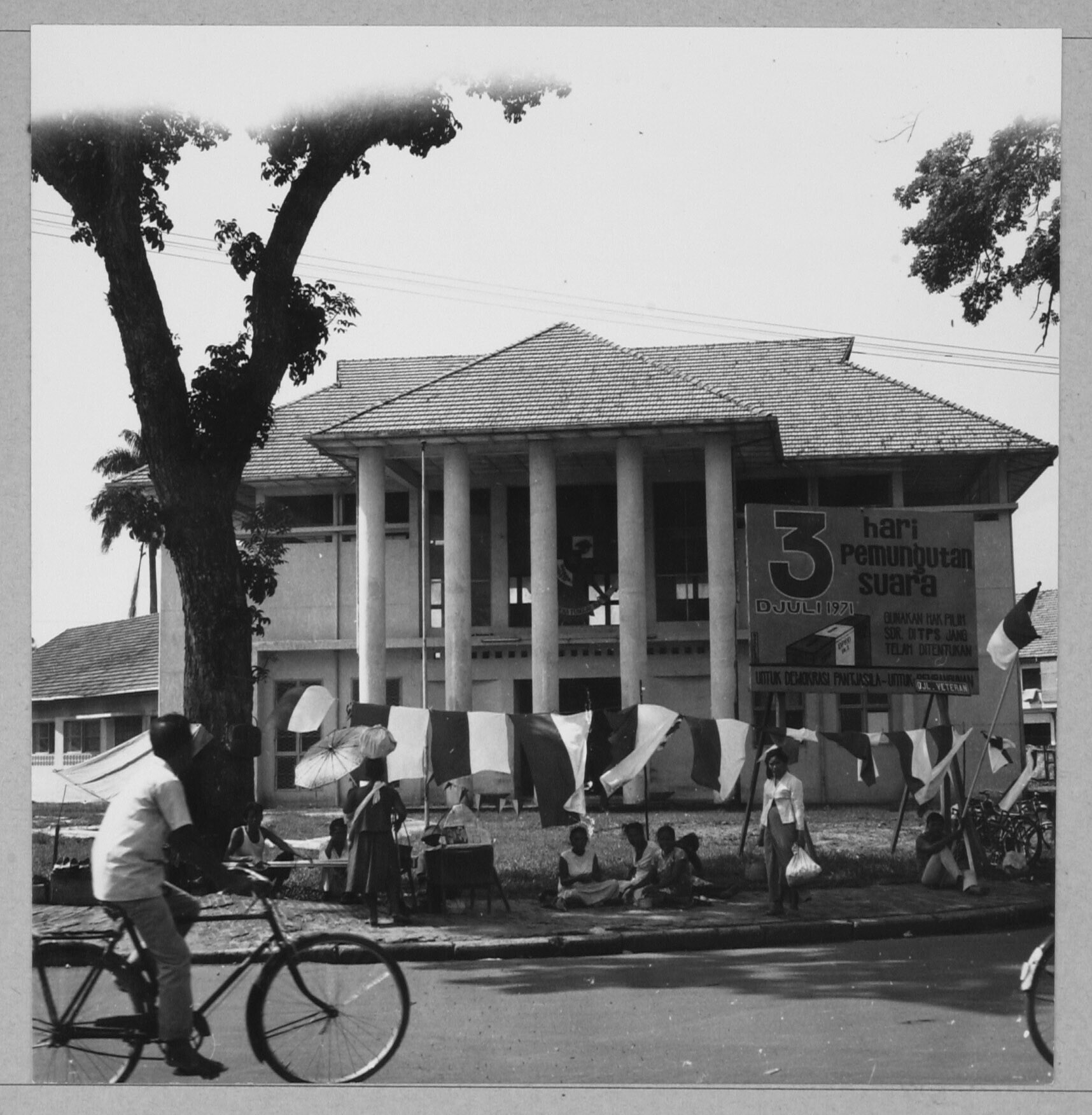 Het gouvernememtskanoor, op de voorgrond verkoop van nationale vlaggen ter gelegenheid van de komende viering van Onafhankelijkheidsdag