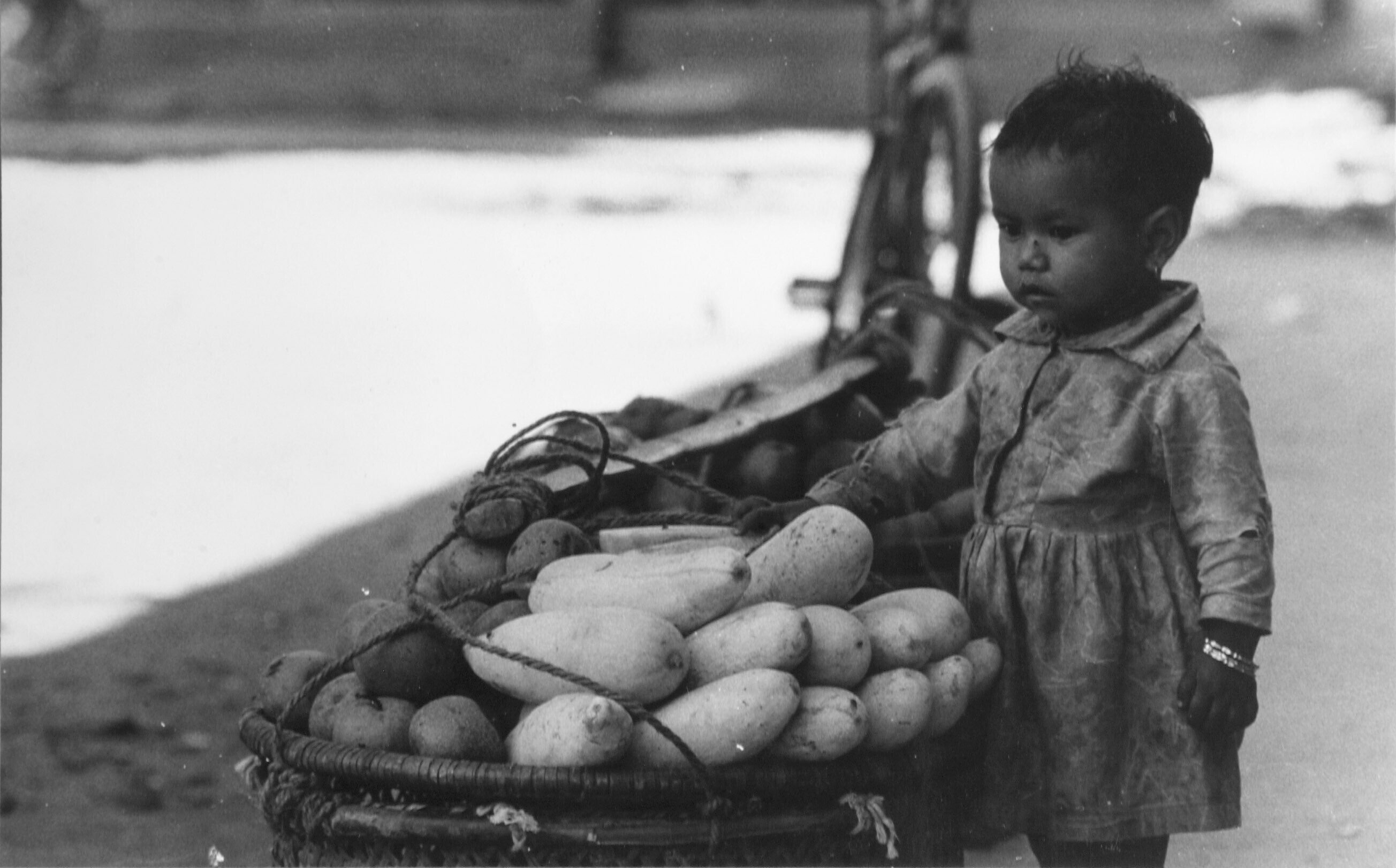 Kind bij mand met vruchten