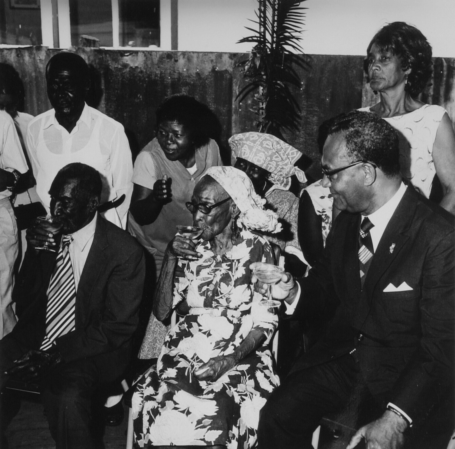 v.l.n.r:de 100 jarige Marcus Wikkeling,zijn 95 jarige oude echtgenote en gouverneur Ferrier
