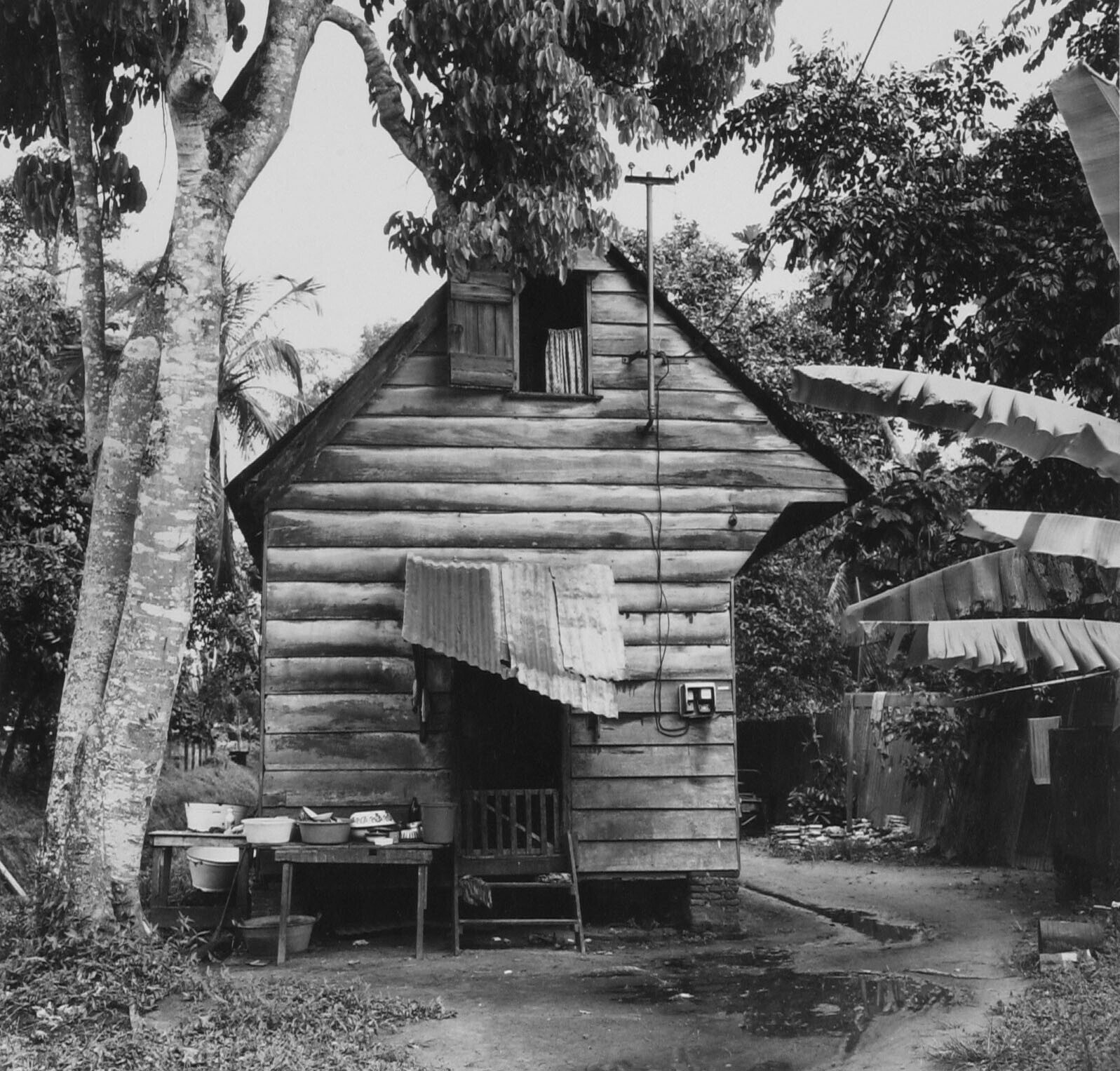 Laatste slavenwoning van de stad gelegen aan de Wanicastraat en de Viotte kreek, links van het huis de bekende Knippaboom, standaard bij elke slavenwoning