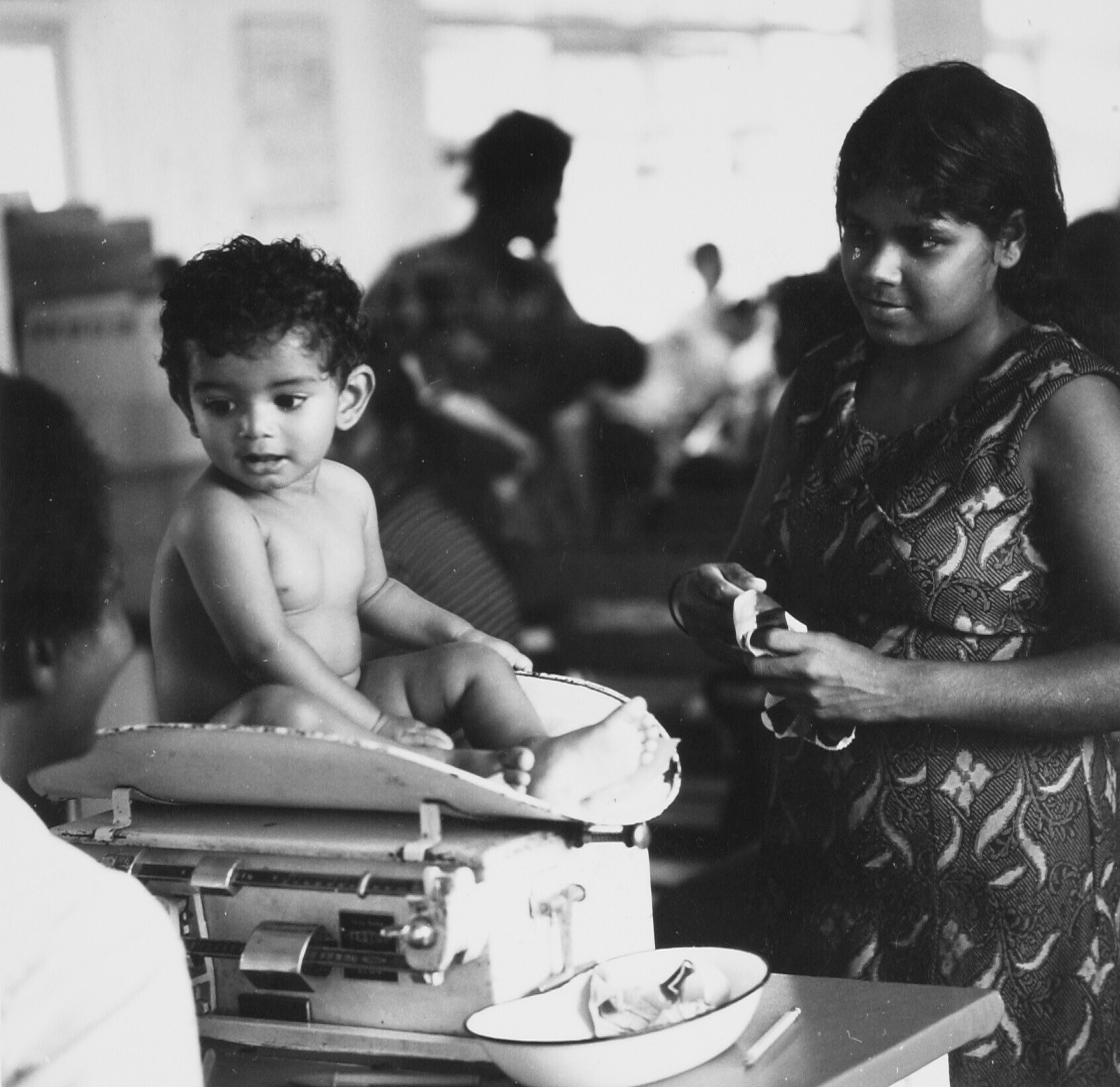 Paramaribo - B.O.G. (Bureau Openbare Gezondheid). Hindoestaanse moeder met kind.