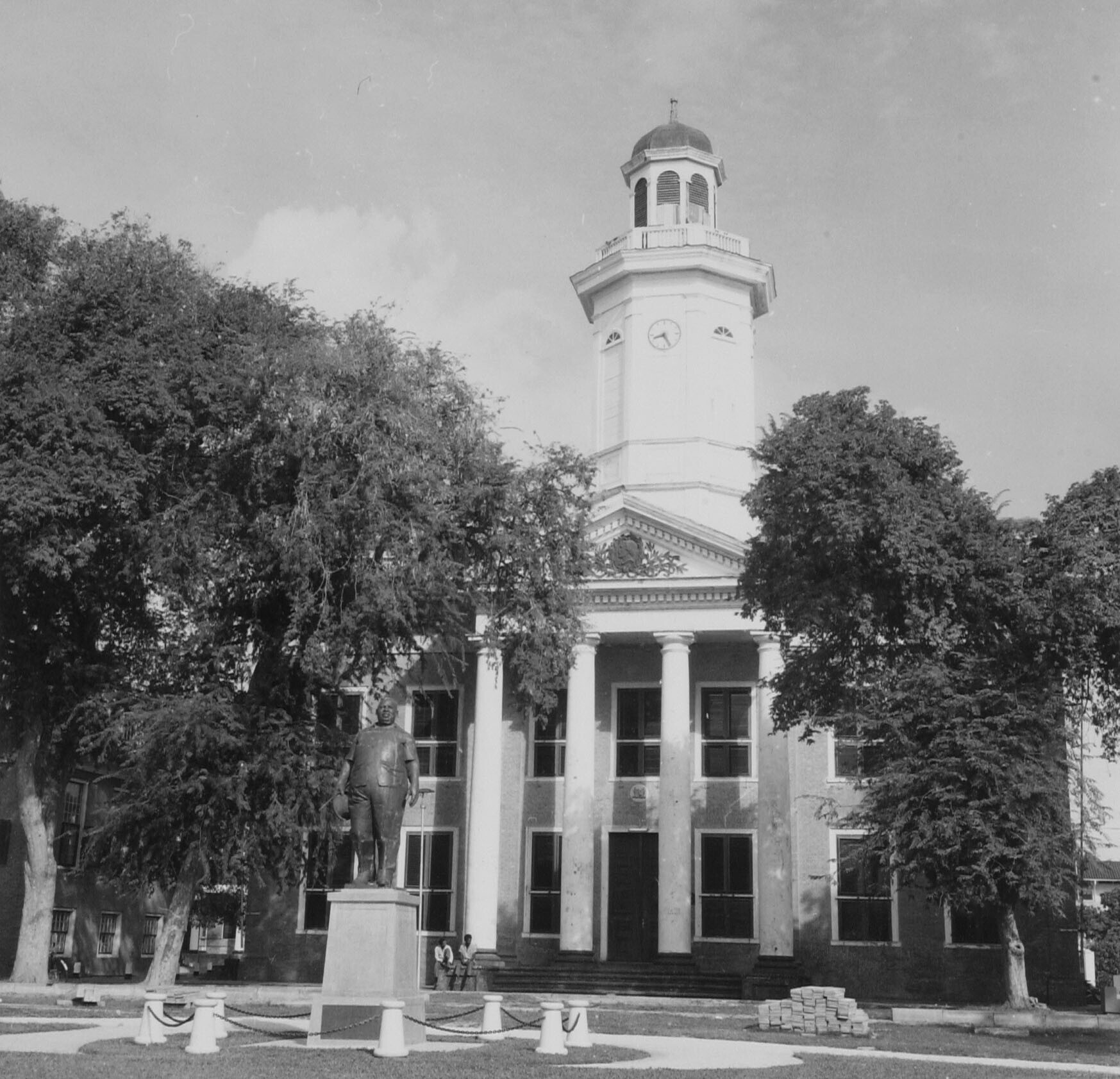 Het Oranjeplein, het standbeeld van Pengel voor het gebouw Ministerie van Financien