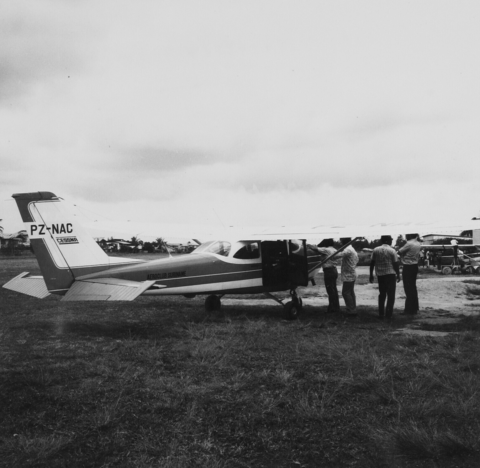 Vliegveld Zorg en Hoop. Een Cessna van de aeroclub Suriname