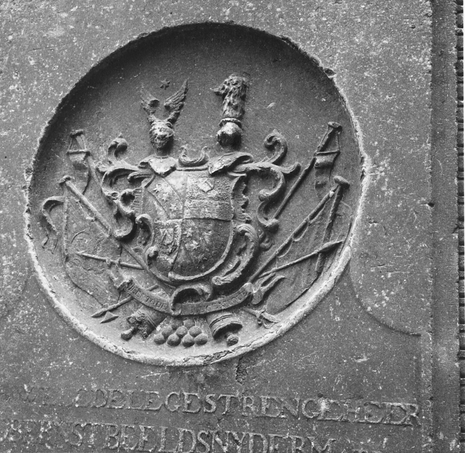Museum fort Zeelandia-Het familiewapen van een edelman op zijn grafsteen