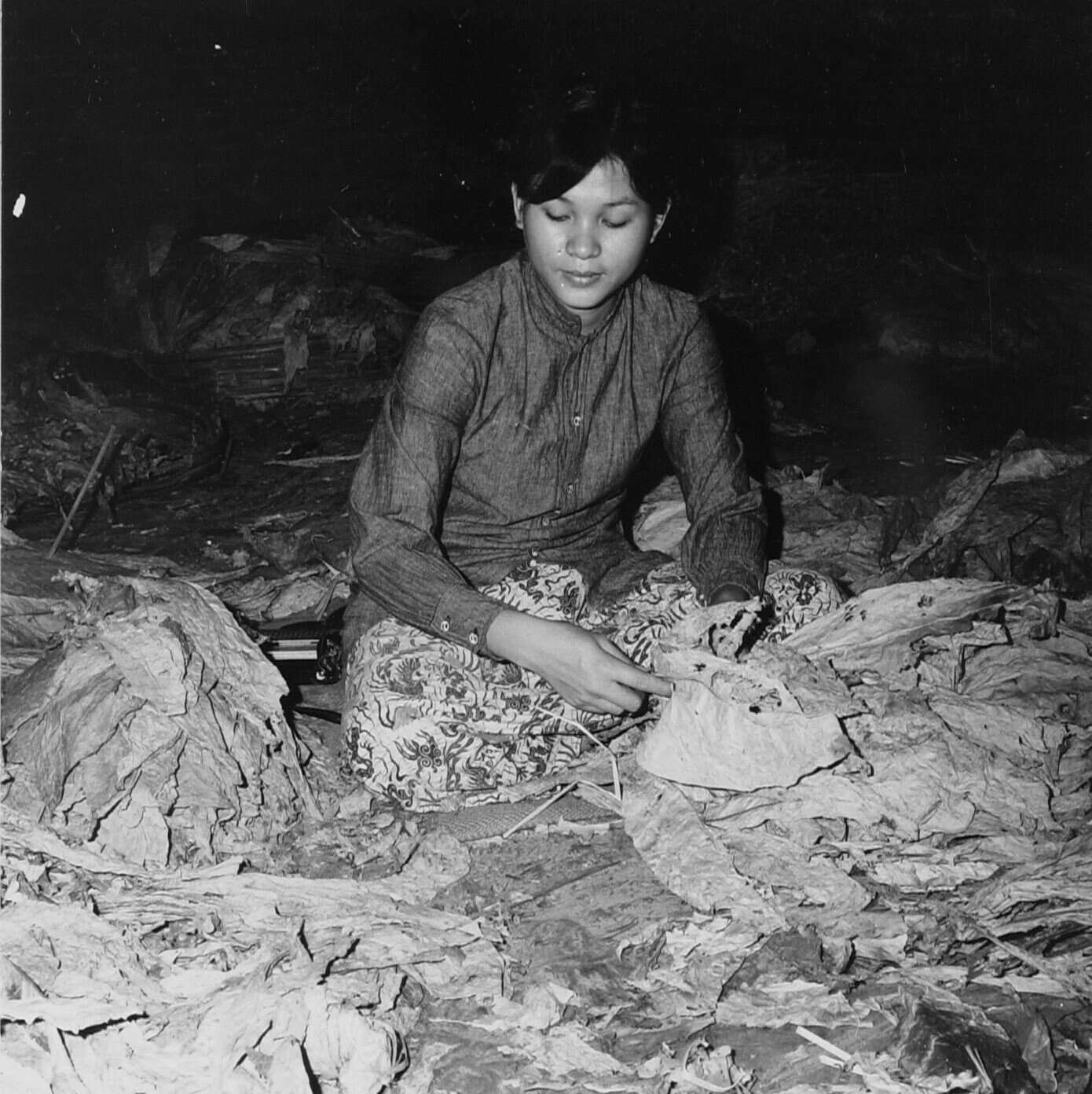 Nadat de tabaksbladeren in de drooghuizen zijn gedroogd, worden zij op kleur gesorteerd Ban Mae Fèh, O.v.Chieng Mai, N.Thailand.