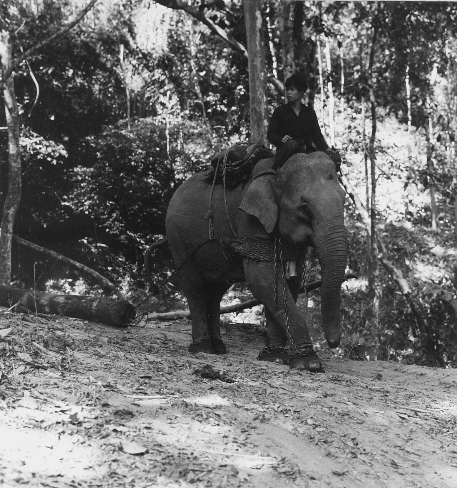 Tamme en speciaal daarvoor getrainde olifanten vervullen in verschillende delen van Thailand nog een belangrijke functie bij de afvoer van teak stammen uit de dichte wouden.