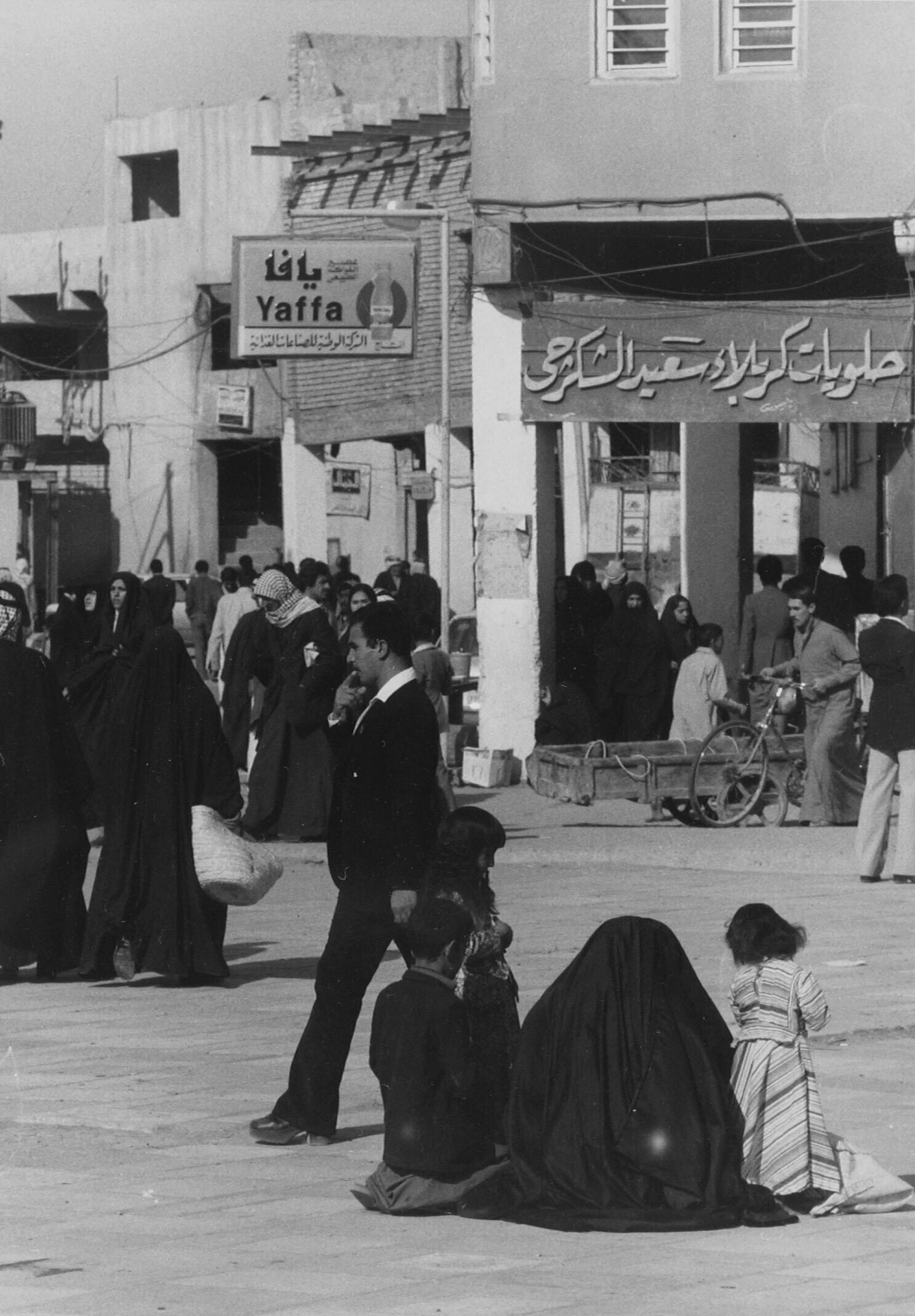Personen op het plein voor de grote moskee