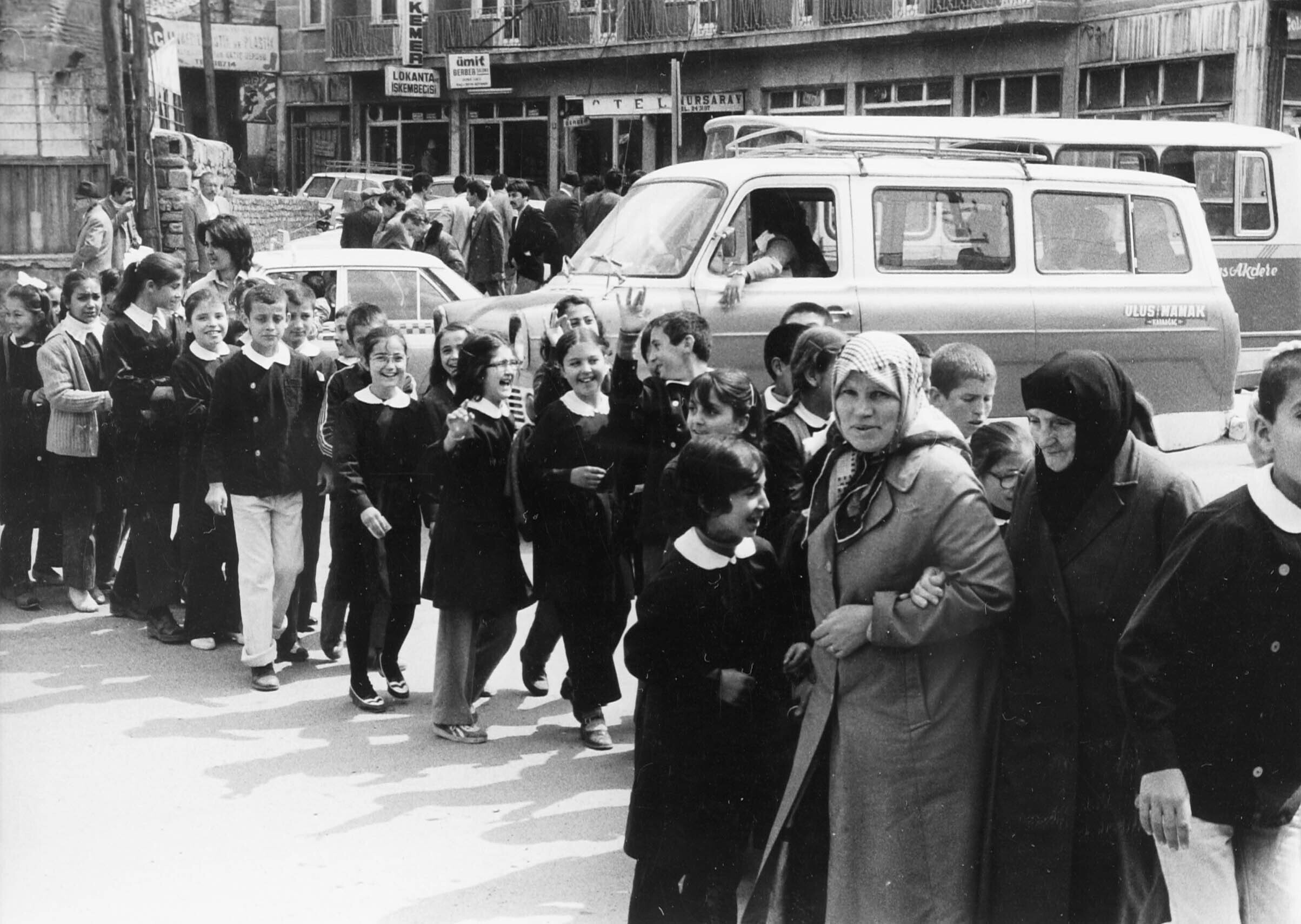 Ankara. Overstekende schoolkinderen in de stadswijk Ulus