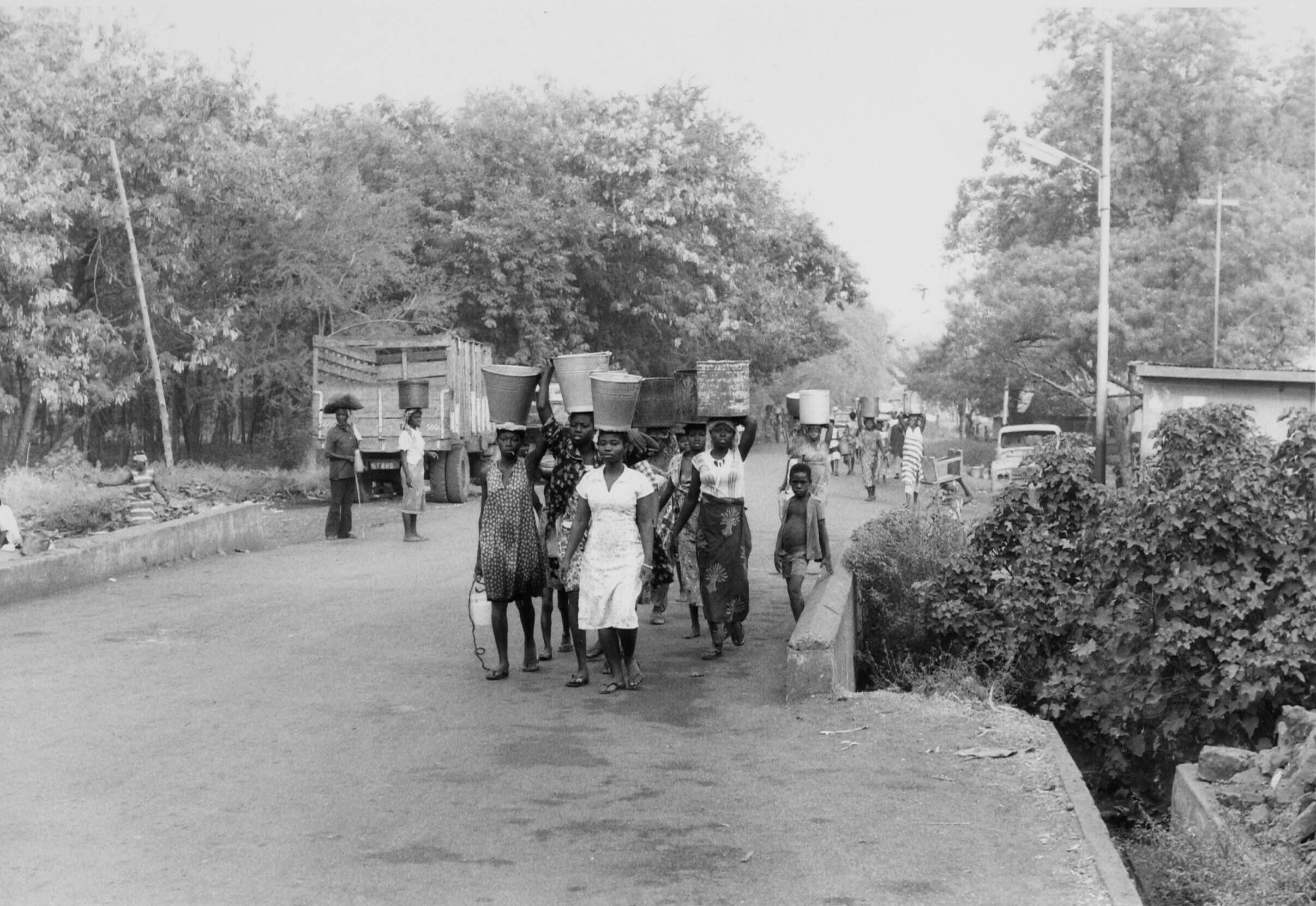 Waterhalen bij het in de droge tijd enige waterpunt van Tamale