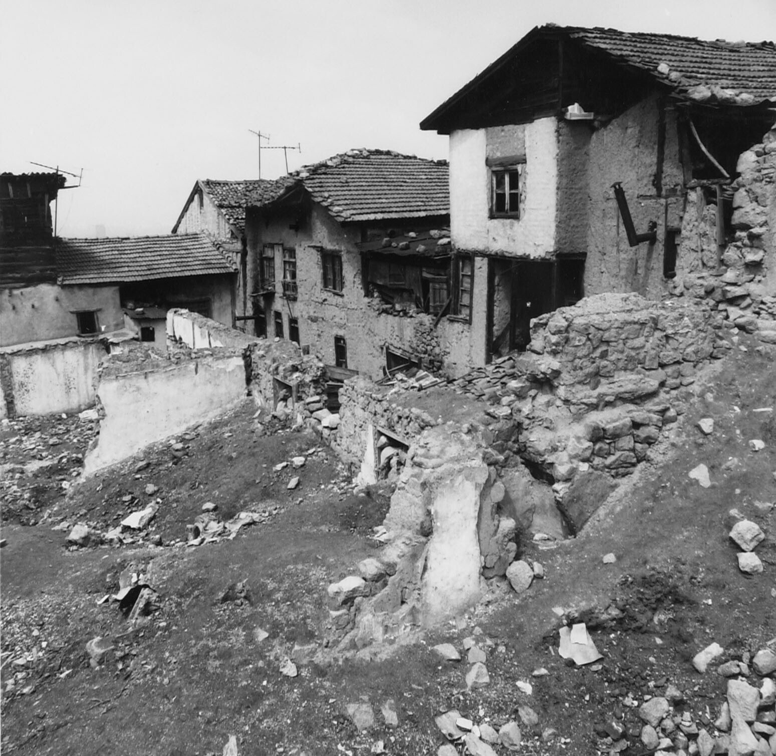 Oude muurresten en woningen in de Citadel