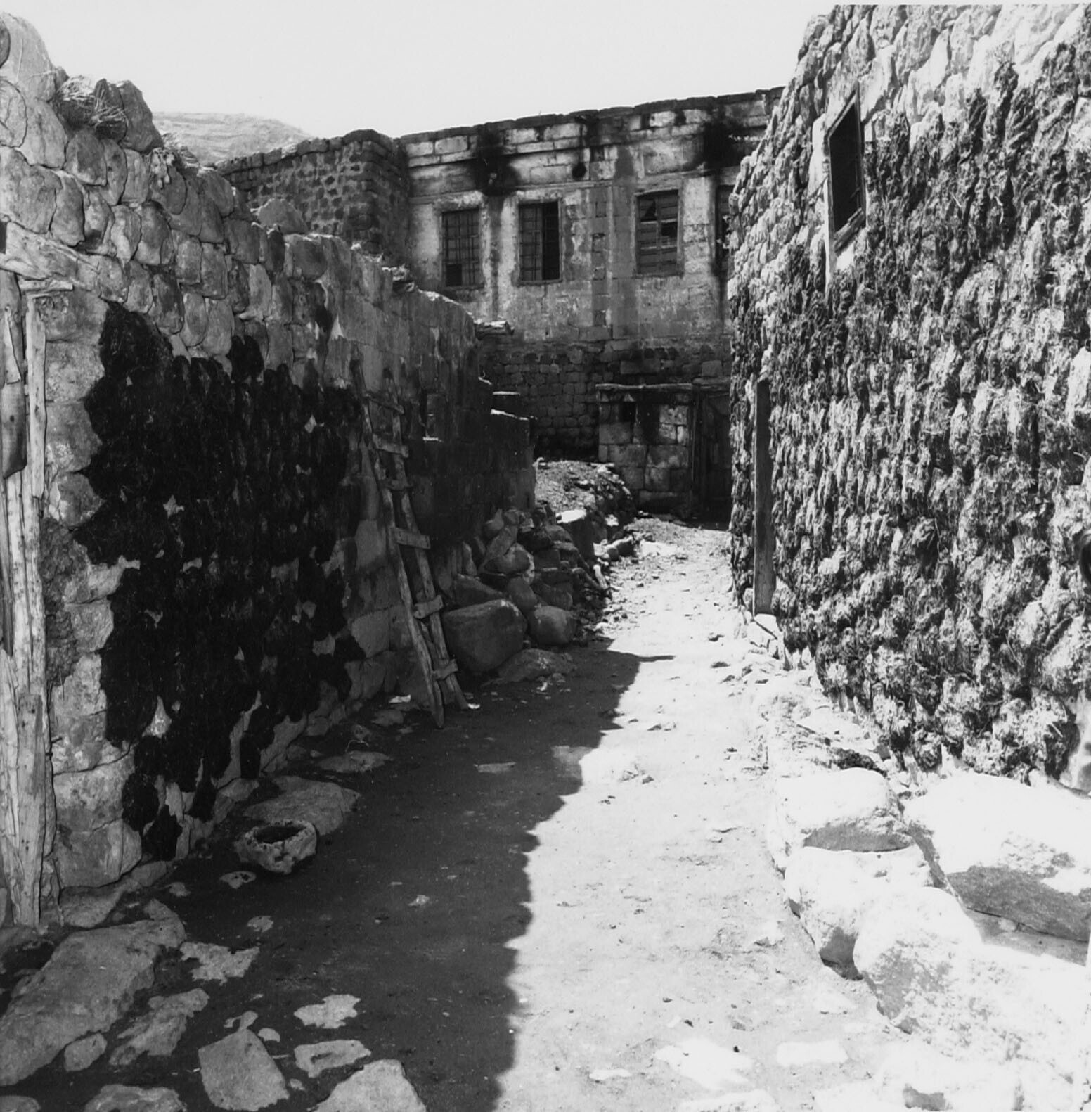Een voorraad mestkoeken aan de muur geplakt om te drogen, deze mestkoeken worden in de winter gebruikt als brandstof