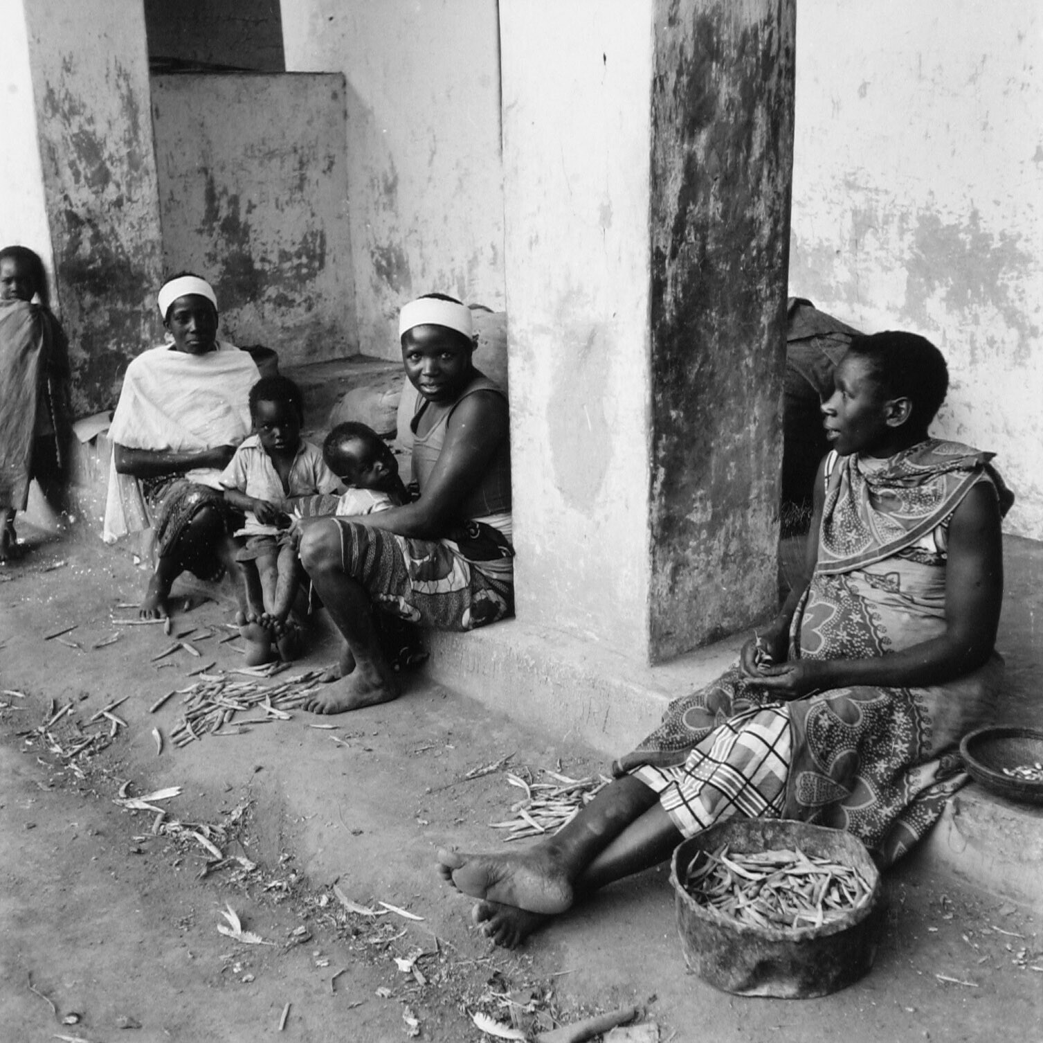 Nyakyusa vrouwen en kinderen doppen bonen