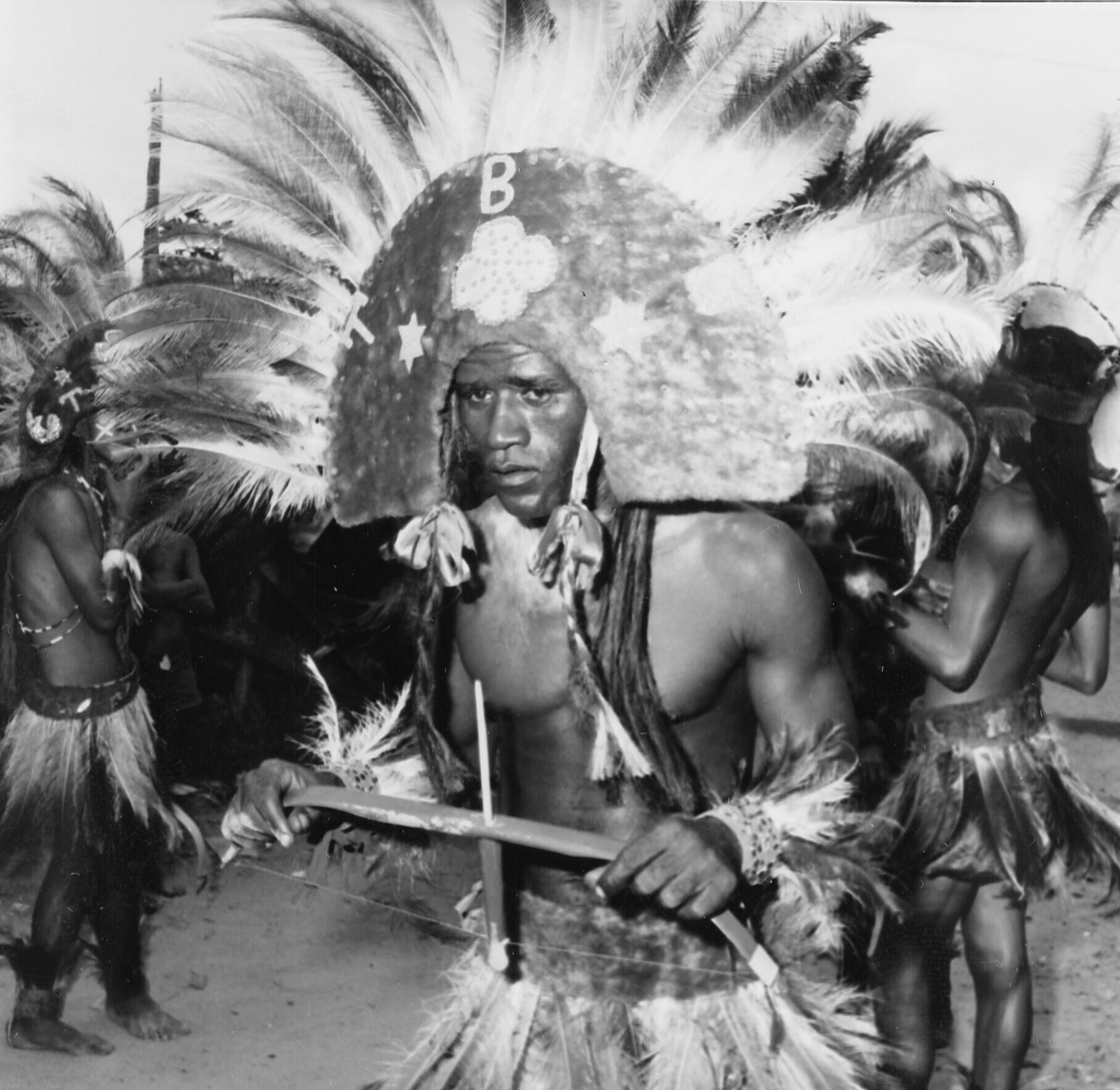 Groepsportret van Coboclinhas dansers tijdens het carnaval in Recife Olinda