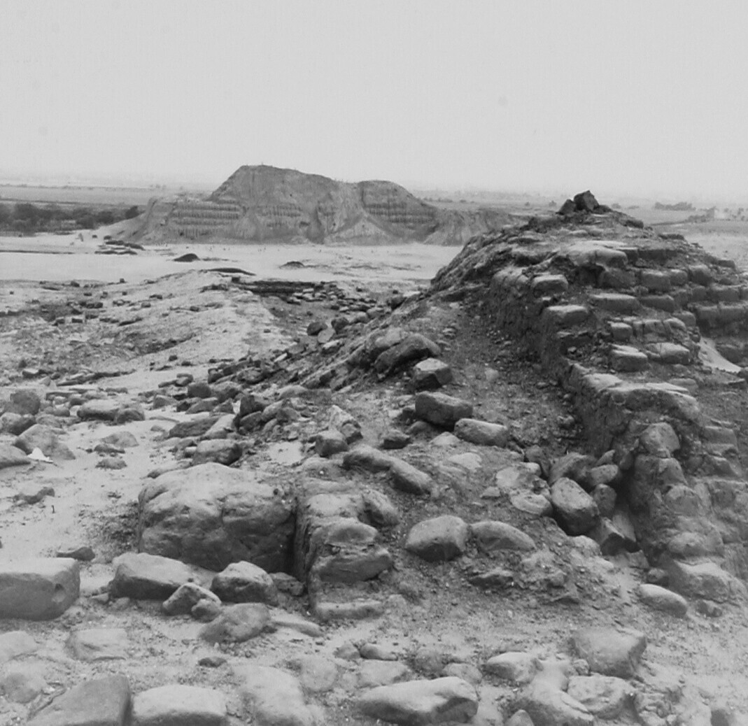 Trujillo. Ruïnes met op de achtergrond de Piramide van de Maan