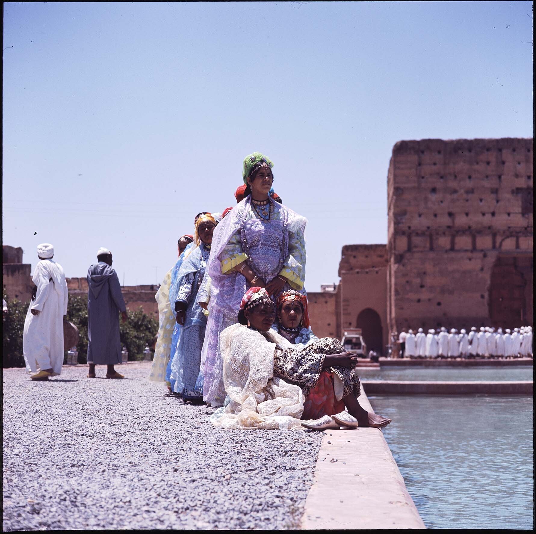 Feestelijk geklede vrouwen op het nationaal folklore festival te Marrakech