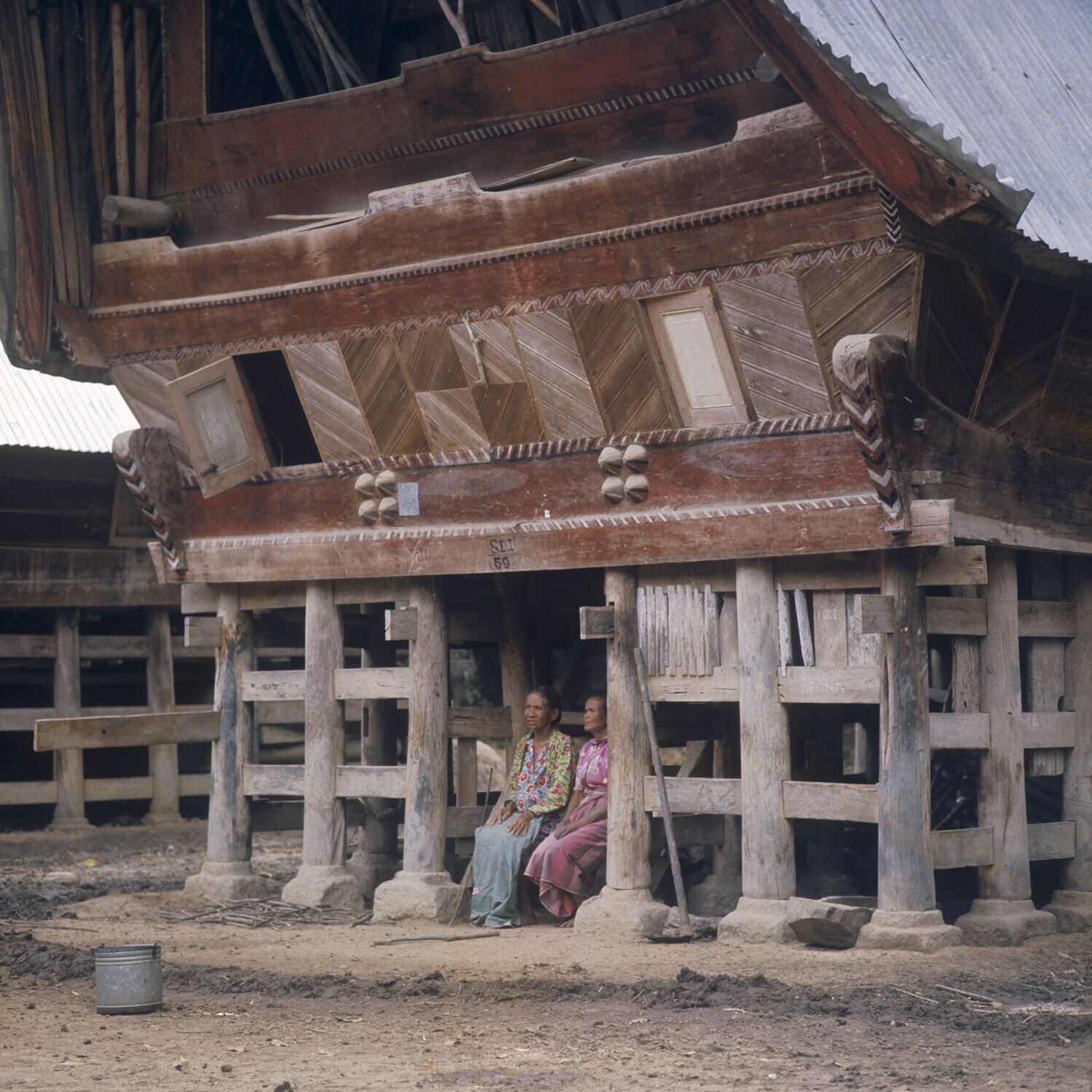 Toba Batak vrouwen voor een huis