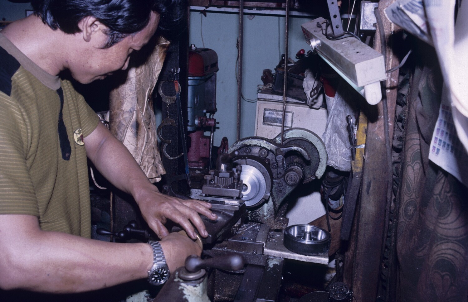 Jakarta. In de achterbuurt van Manggabesar in een klein hokje is deze zelfstandige bankwerker aan het werk.