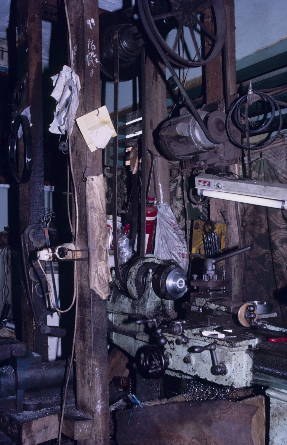 De apparatuur is een samenvoeging van allerlei stukken die niet bij elkaar horen. De electrische installatie en de aandrijfpullies voldoen in geen enkel opzicht aan de veiligheidseisen.