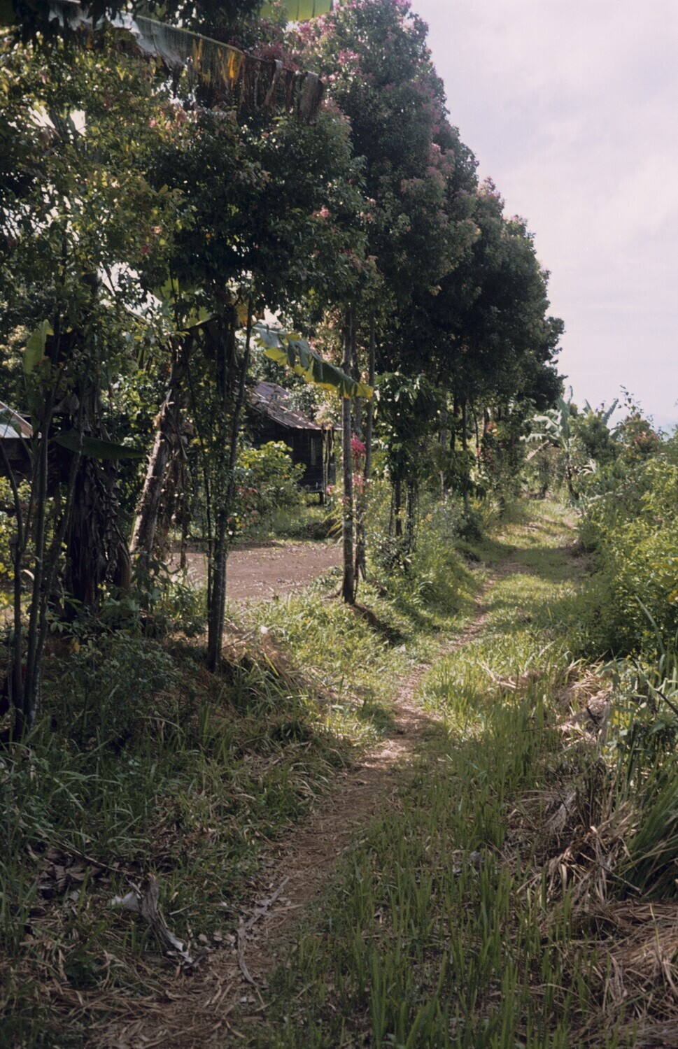 Landweggetje met volwassen kaneelbomen.