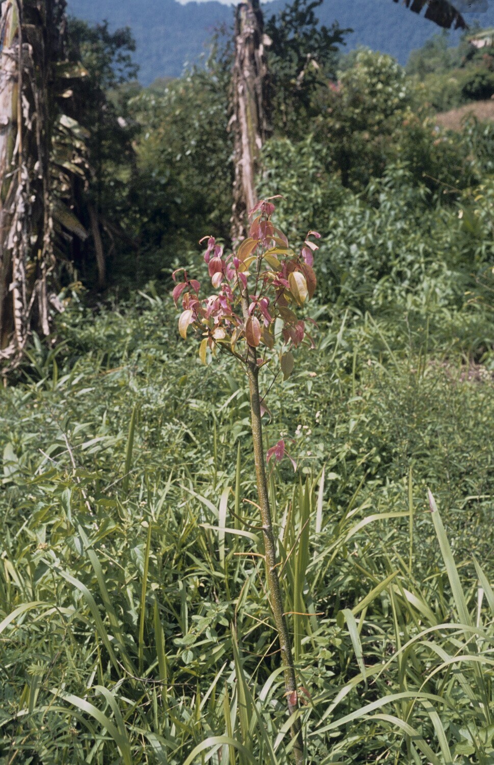Stek van Cynamom burmani met nieuwe rode scheuten aan de top.