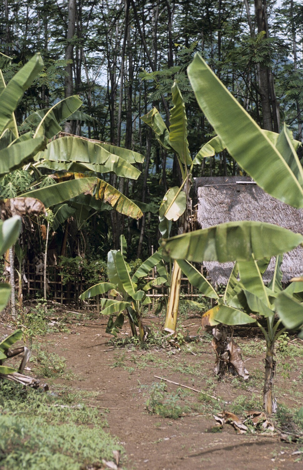 Bevolkingstuin, o.a. bananen in het dorp Pagadugan, Jatiluhur, Java.
